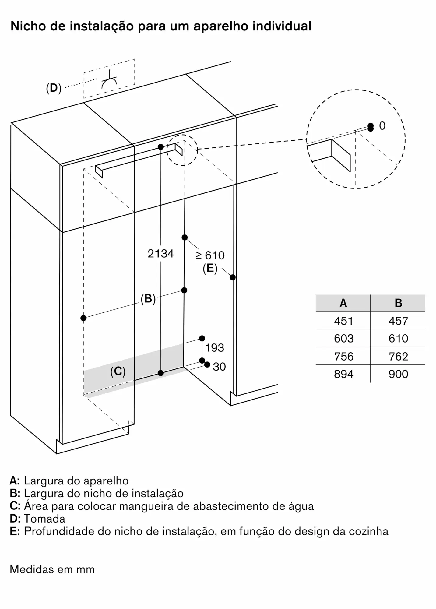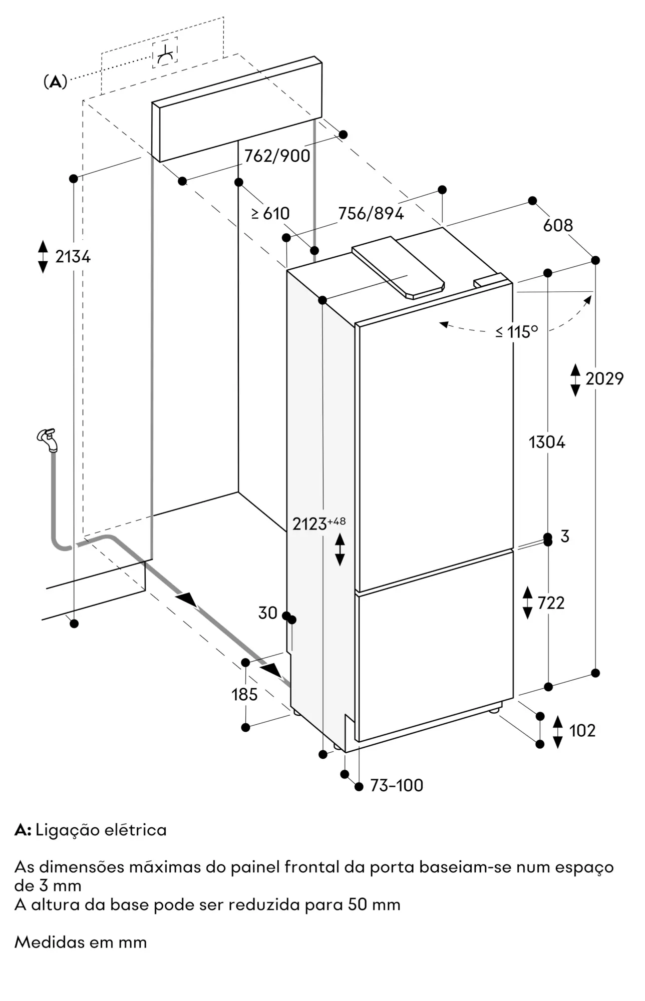 Prever uma válvula de retenção para a ligação de água na lateral do aparelho sempre acessível.