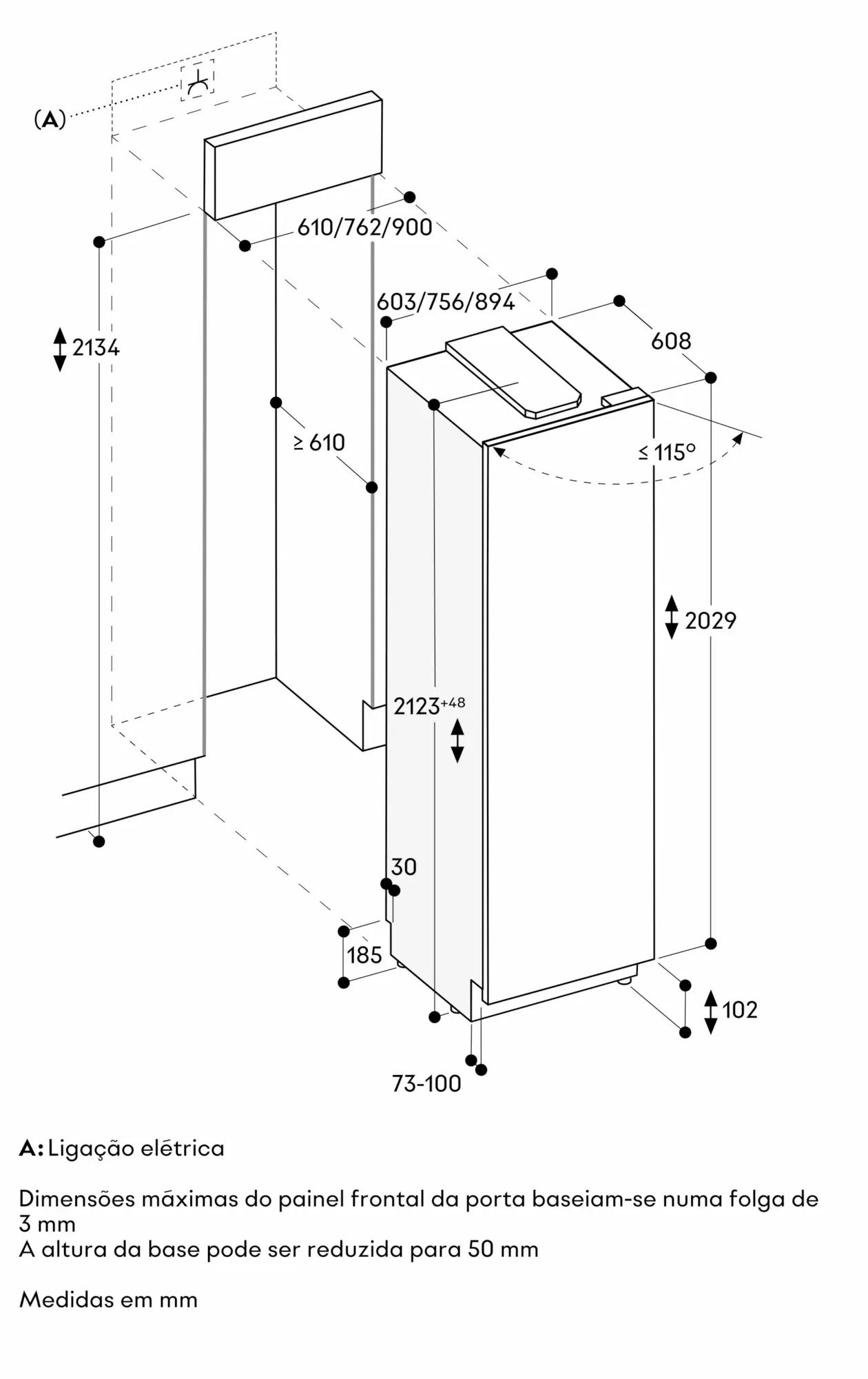 Ângulo de abertura da porta até 115º; com possibilidade de fixar nos 90º.