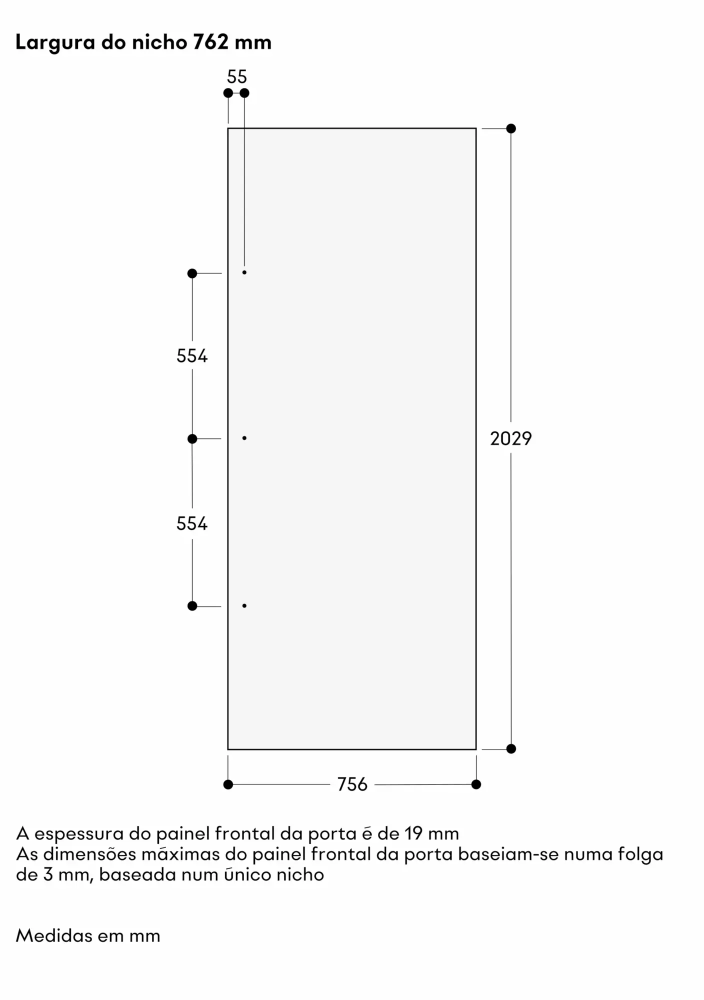 Peso máximo do painel da porta 41 kg.