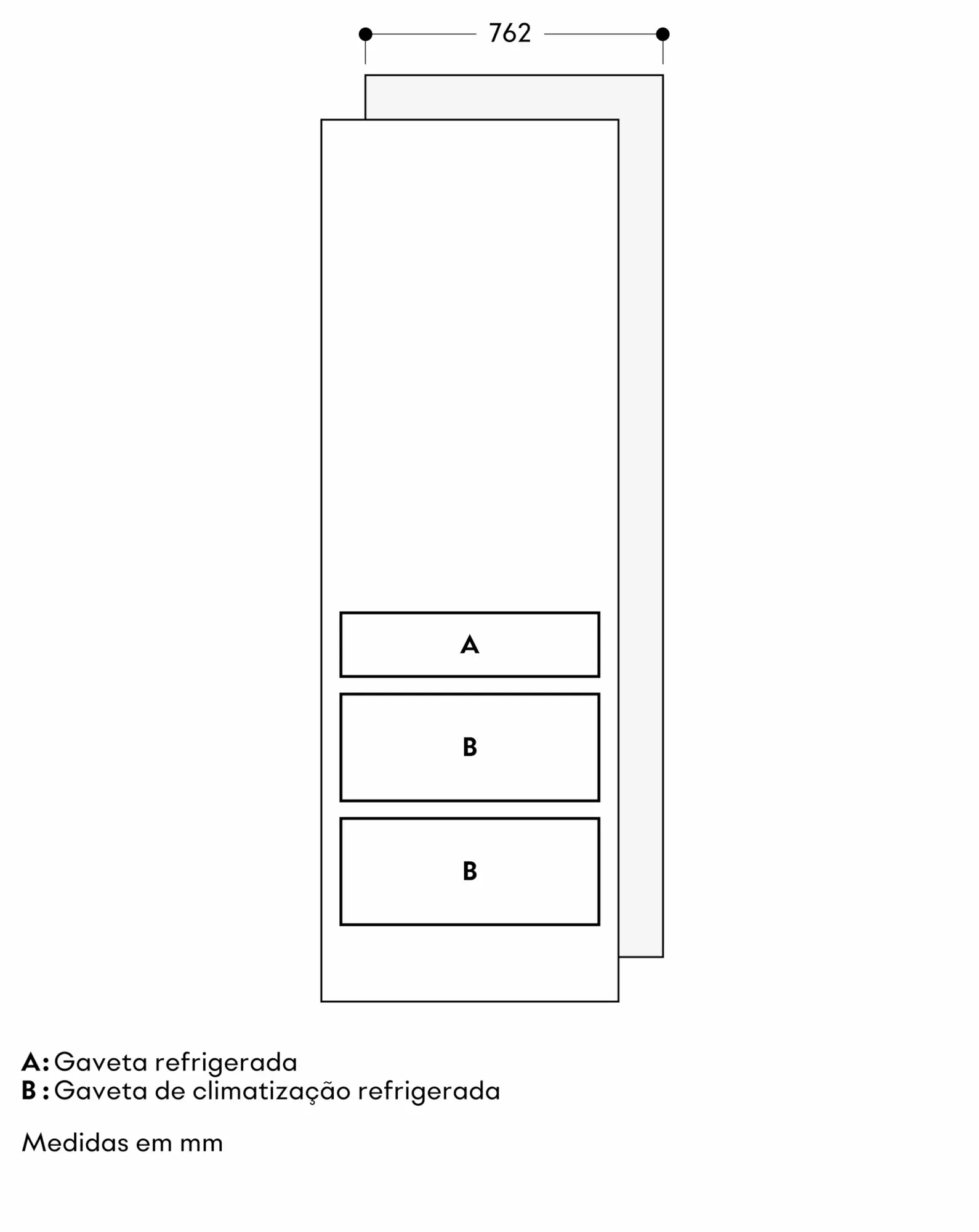 1 gaveta climatizada com temperatura ajustável de -1 °C to +8 °C.