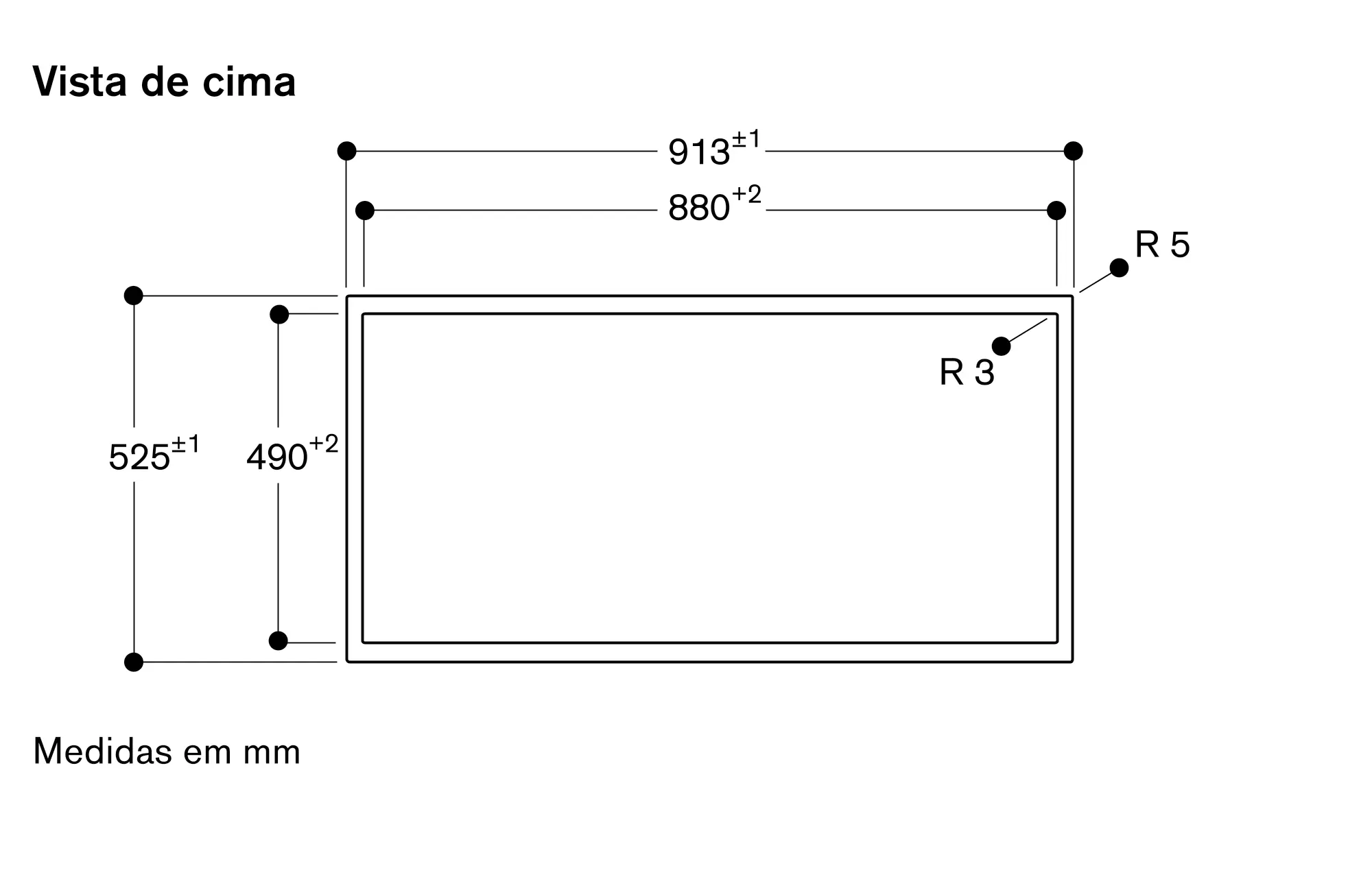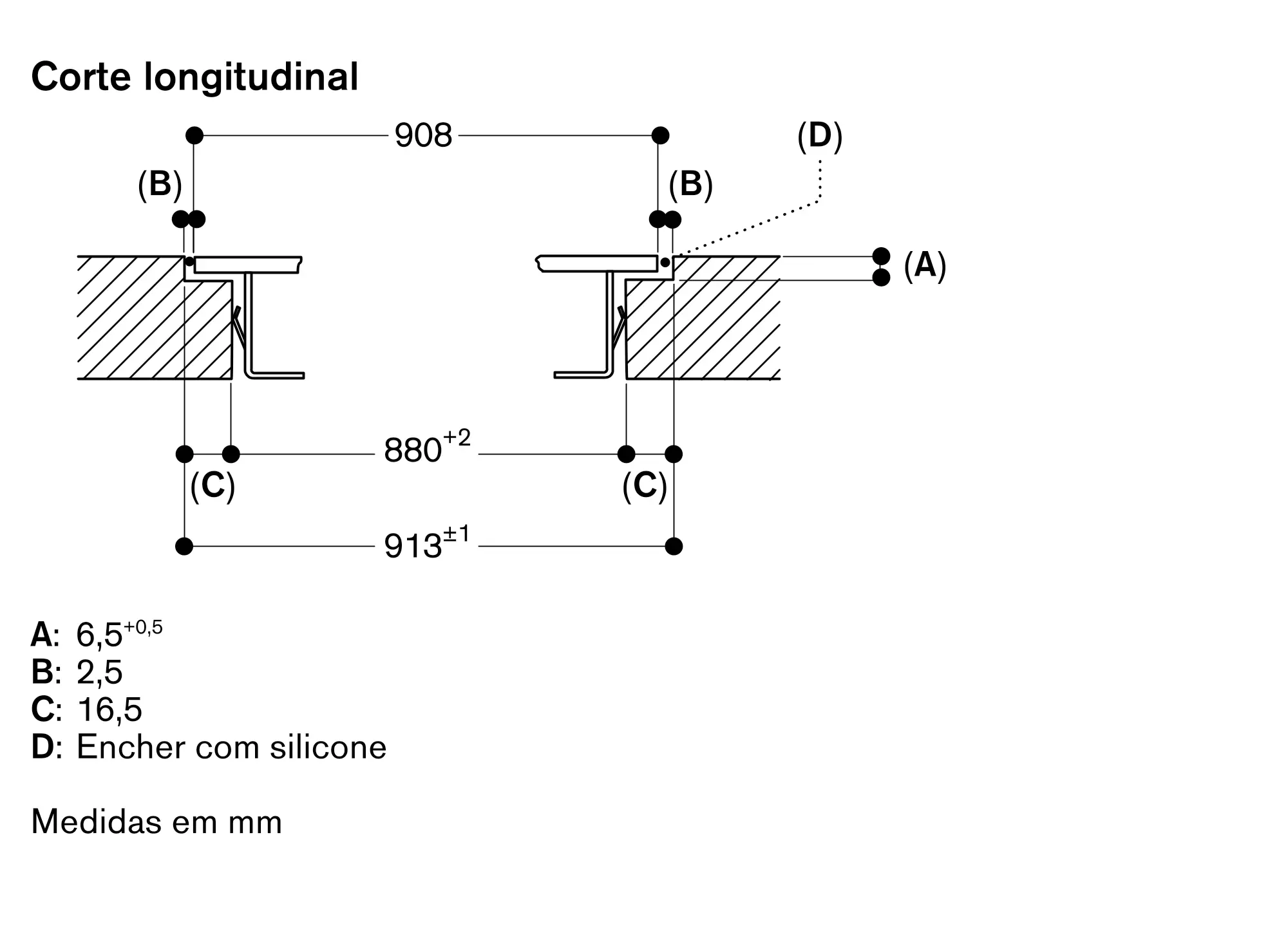 A instalação pode ser realizada em bancadas de pedra, materiais sintéticos ou madeira maciça. É importante garantir que as bordas cortadas são resistentes ao calor e que se encontram devidamente seladas para evitar a entrada de água. Para informações sobre outros materiais, recomenda-se consultar o fabricante da bancada.