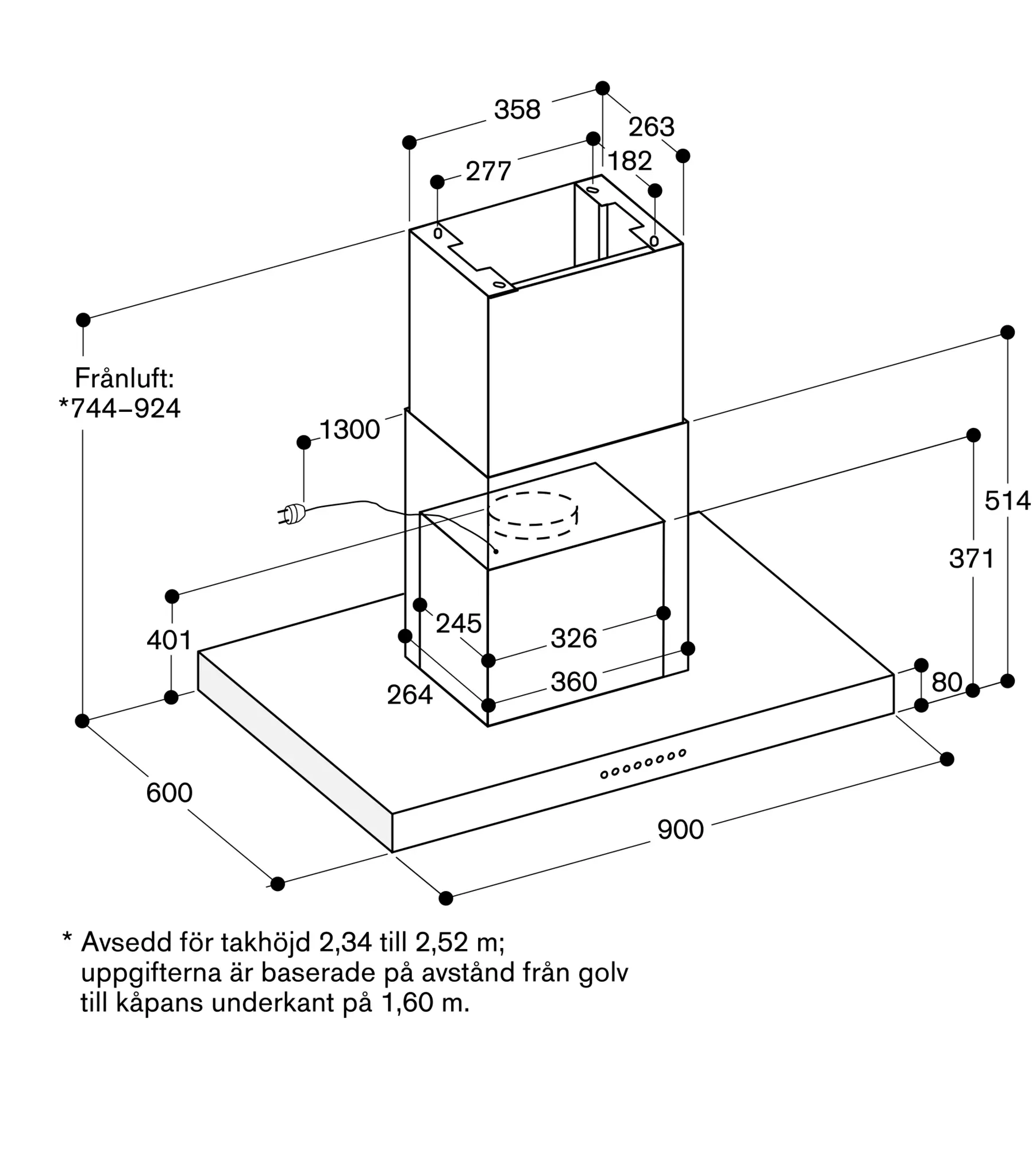 Serie 200 Fläkt för köksö 90 cm ÄdelstålAI240191