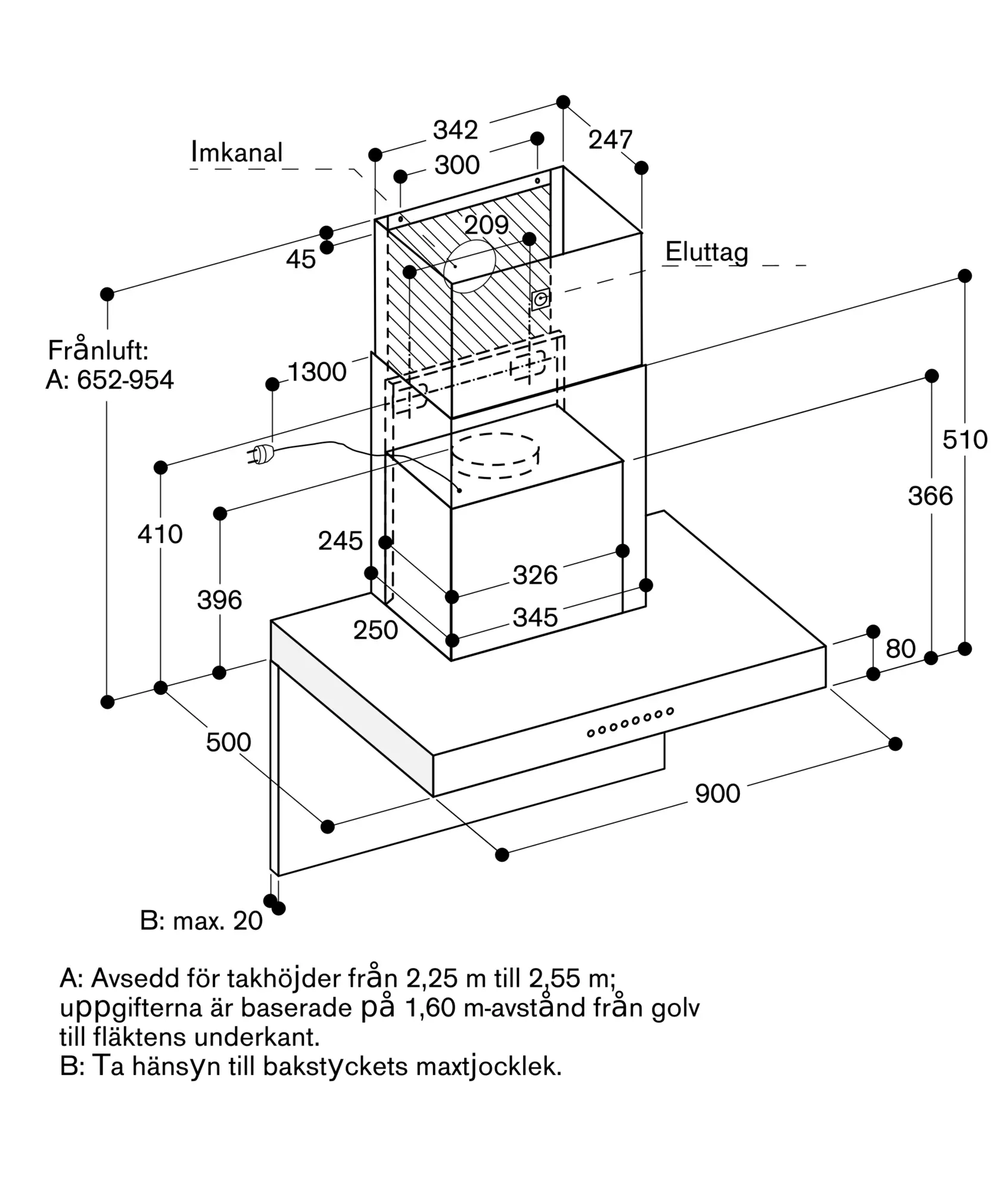 Serie 200 Väggmonterad fläkt 90 cm ÄdelstålAW240191