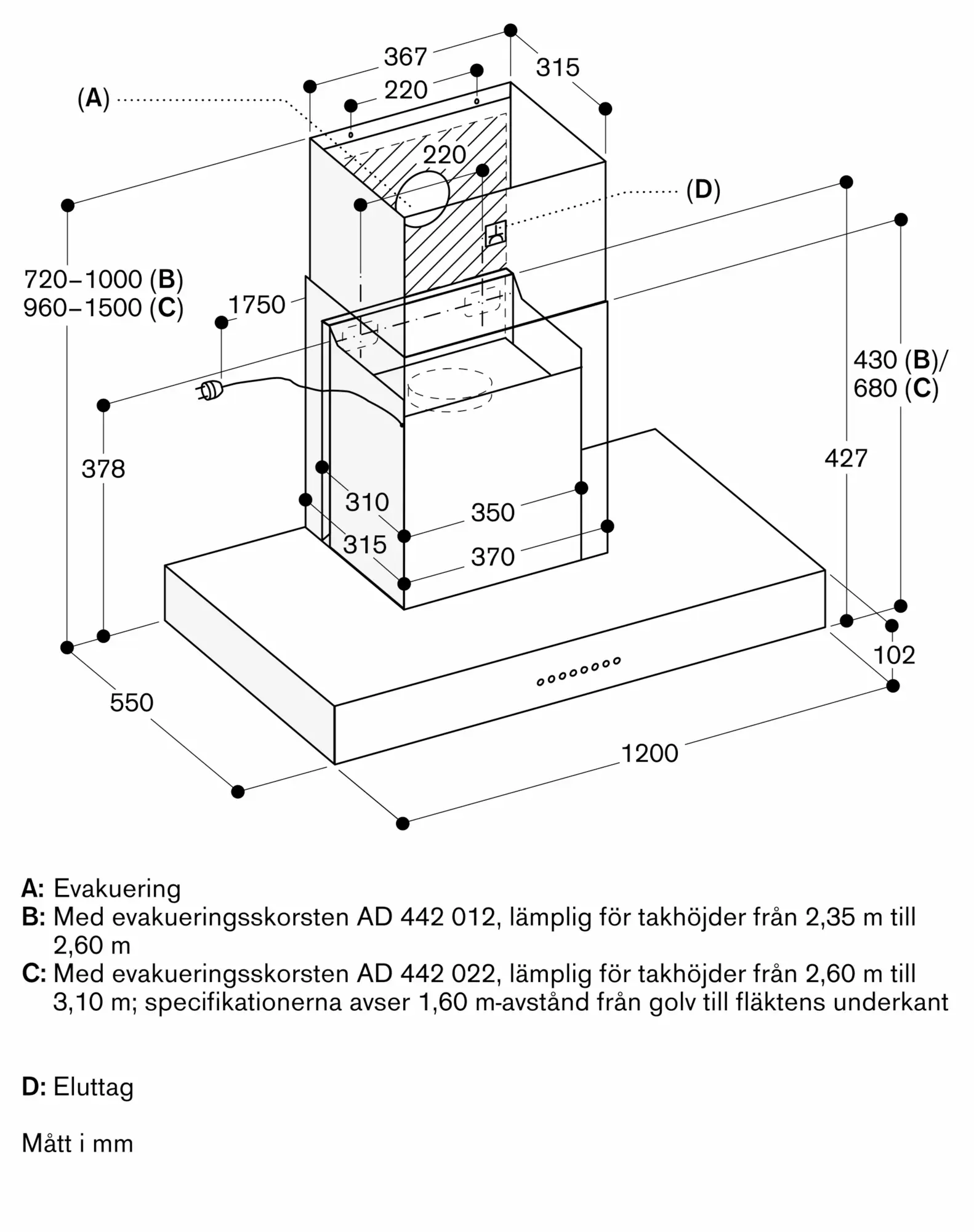 Serie 400 Väggmonterad fläkt 120 cm ÄdelstålAW442120
