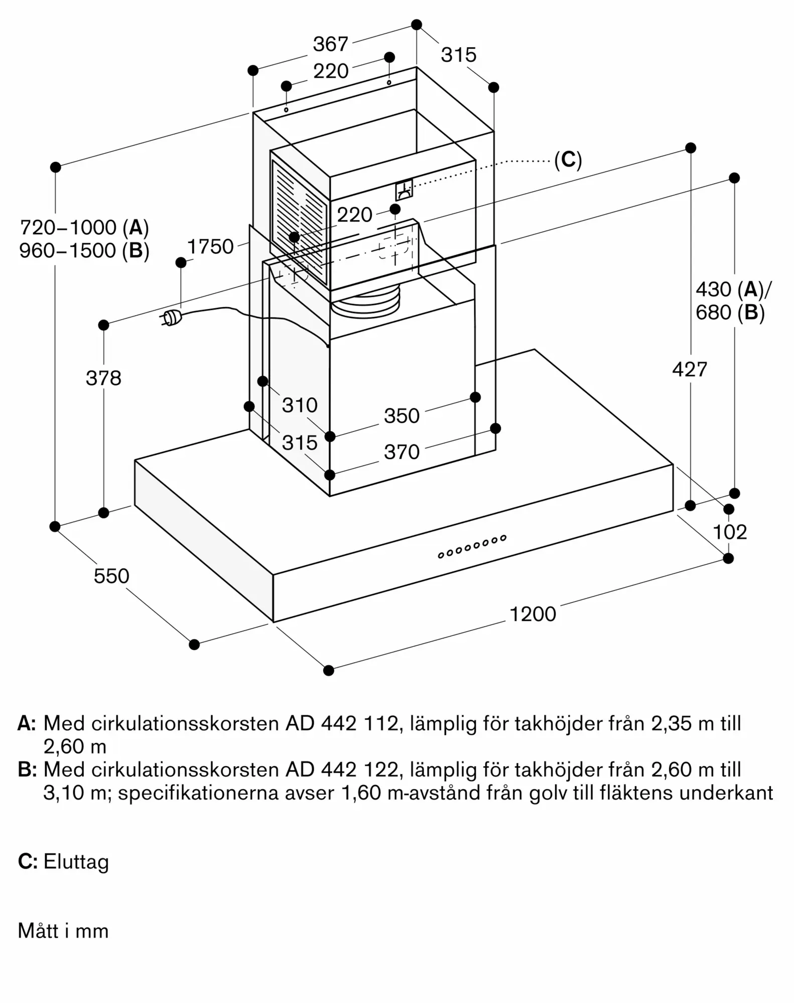Både frånluftsdrift och cirkulation (tillbehör köpes separat)
