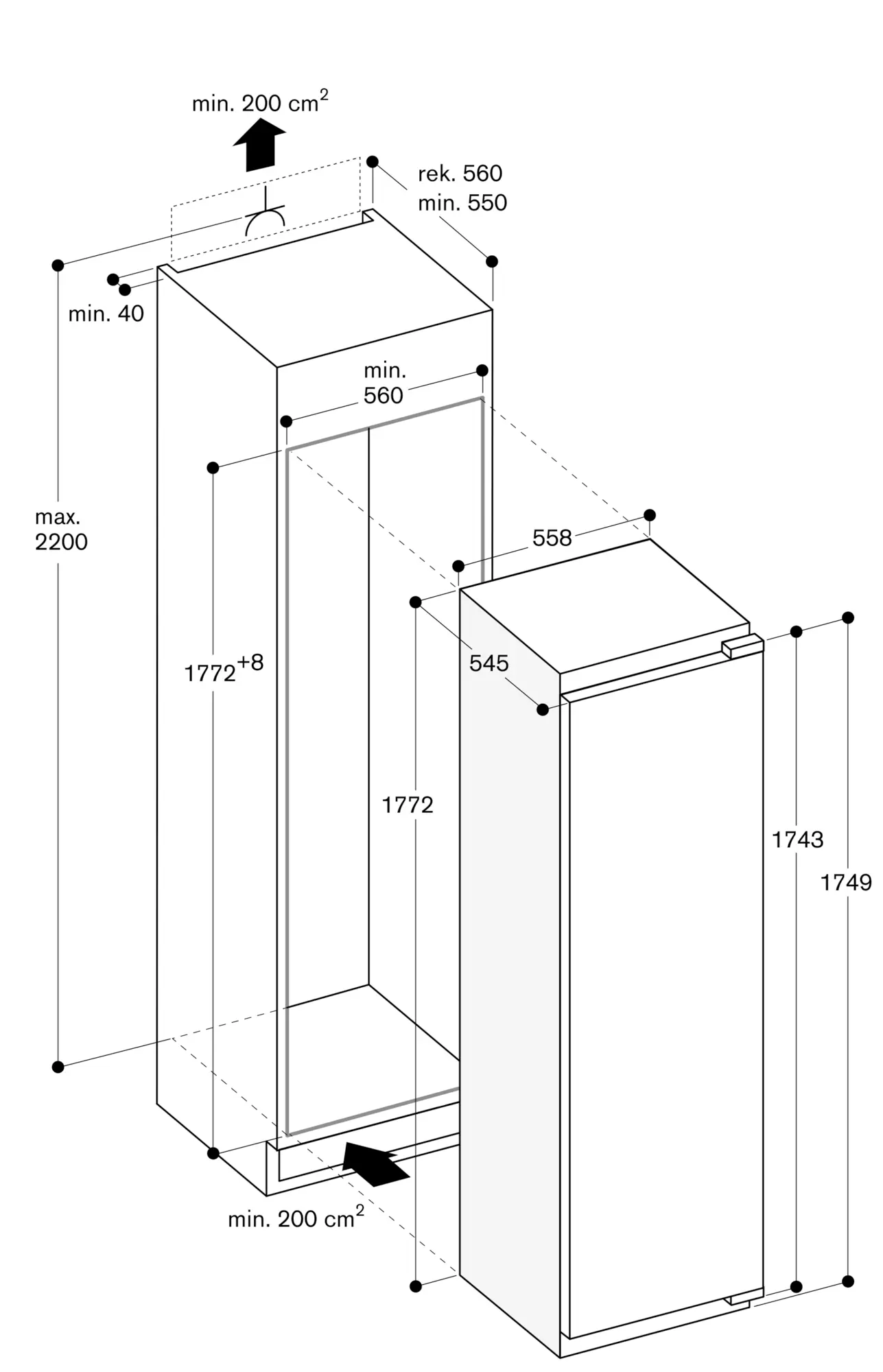 Vario kylskåp med frysfack 177.5 x 56 cm
