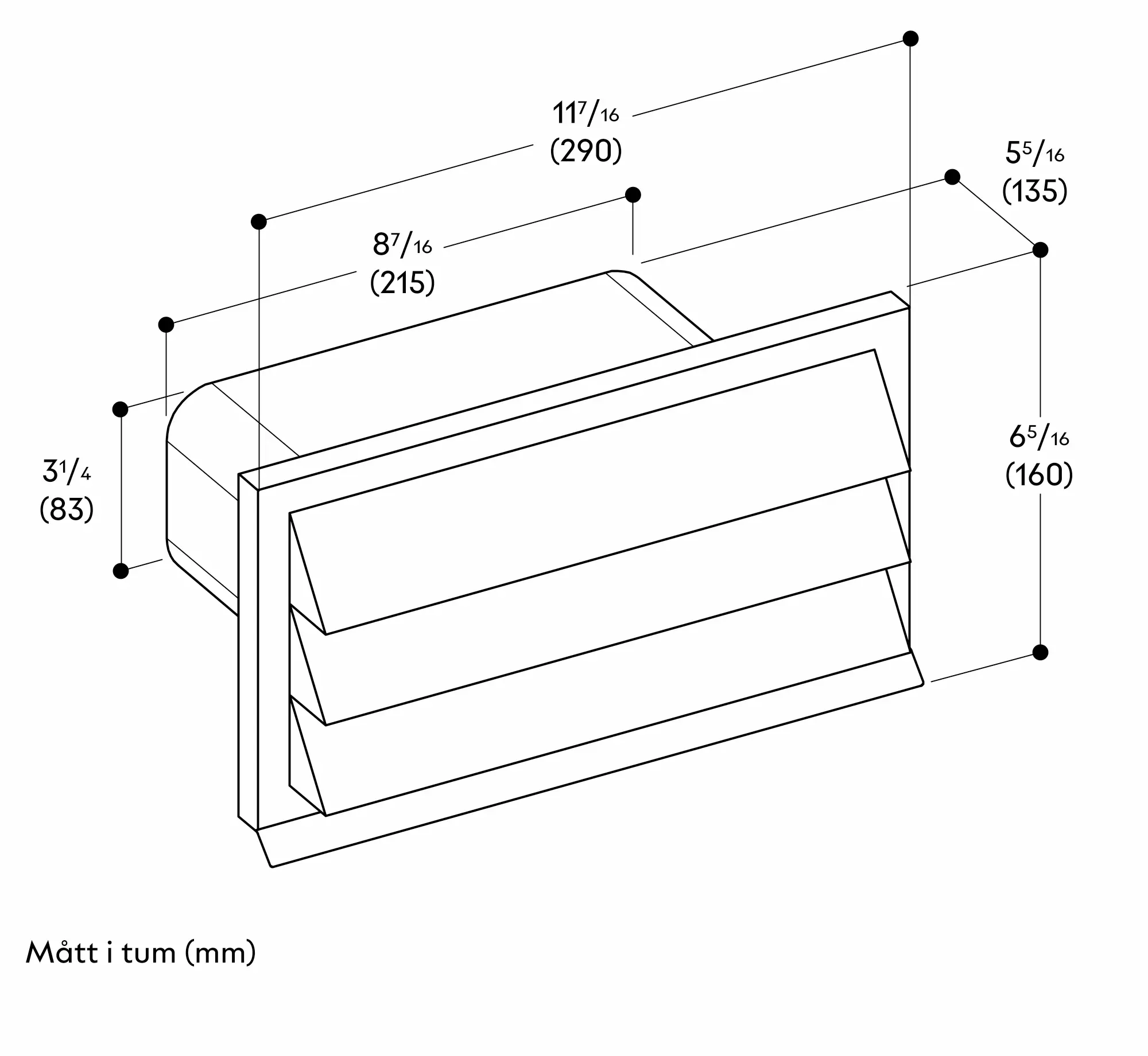 Försumbar luftflödesförlust tack vare stora utloppsgaller i rostfritt stål