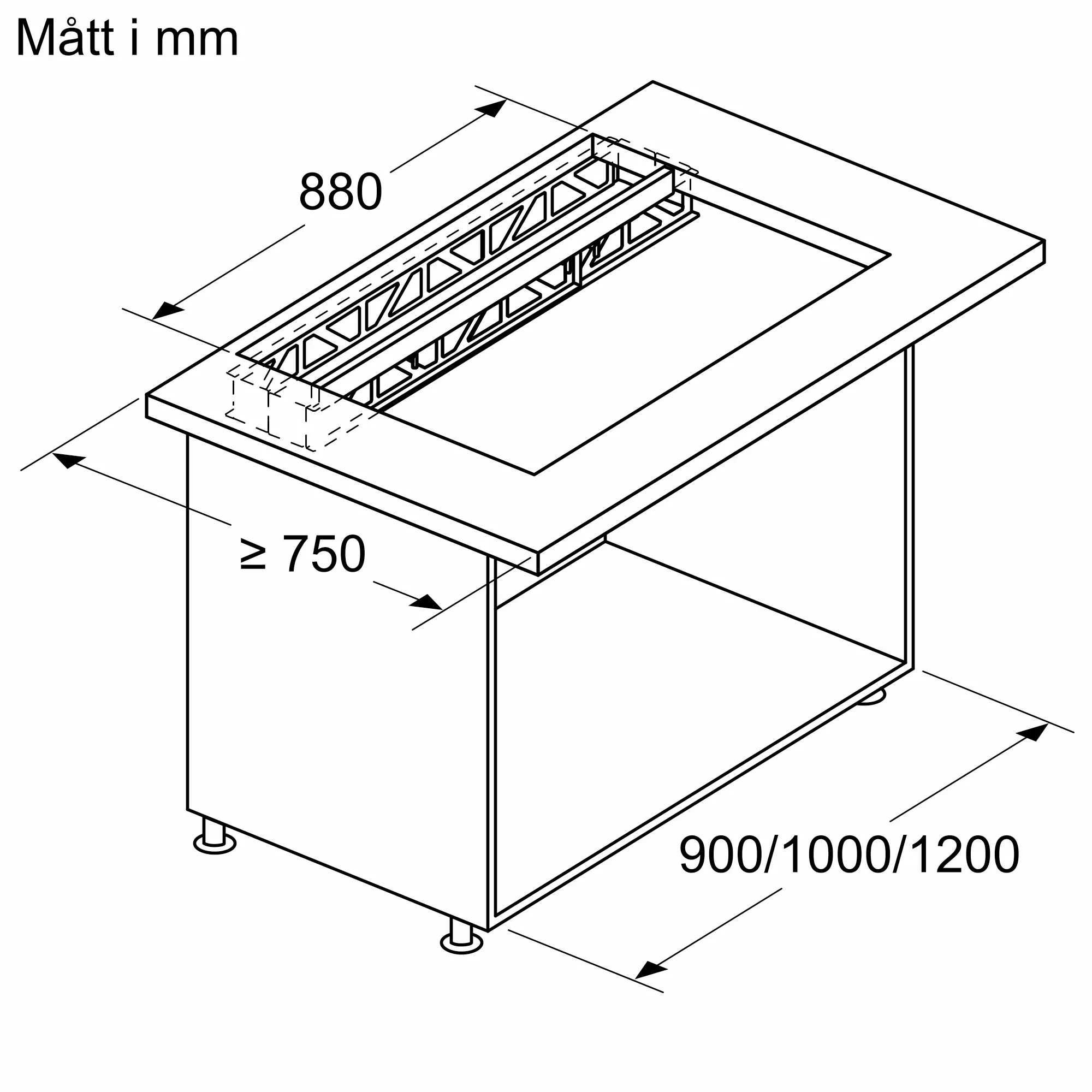 Justerbar för skåpbredder från 90 cm, 100 cm eller 120 cm.