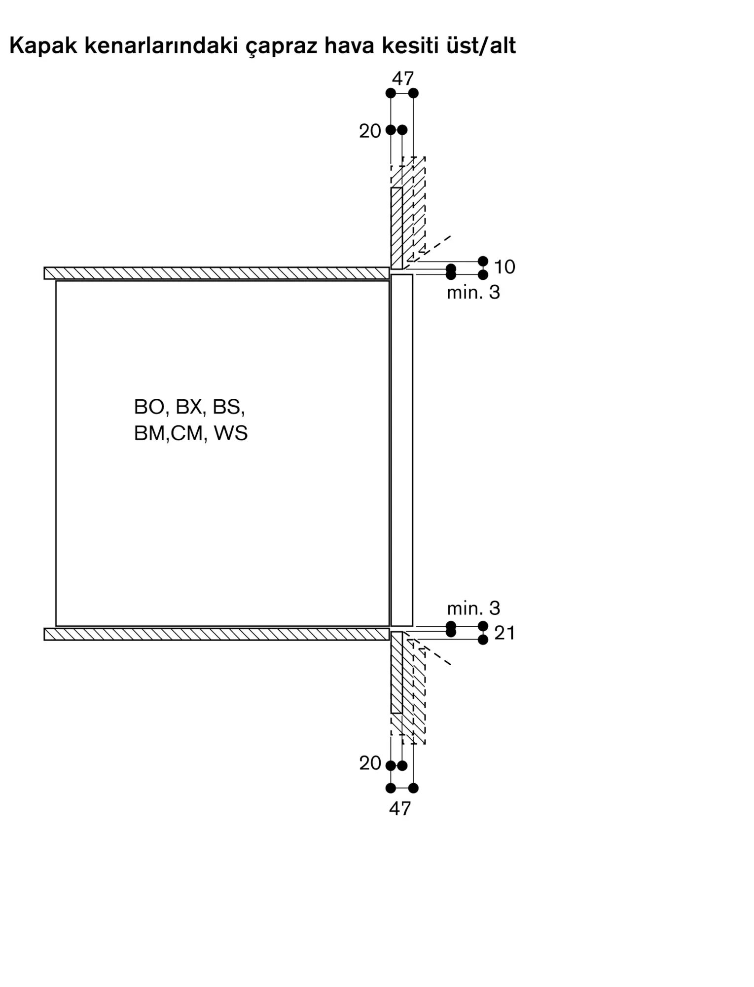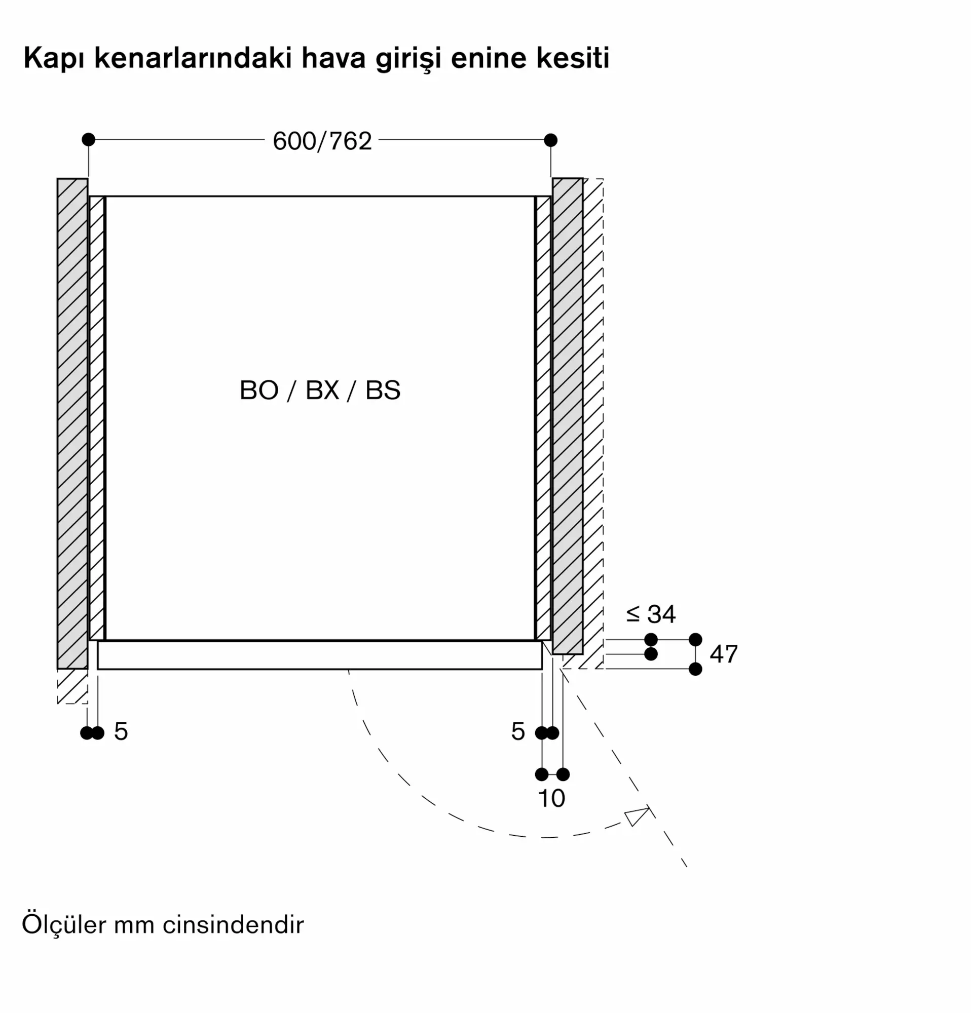 Cihaz paneli, mobilya yüzeyinden 47 mm dışarı çıkar.