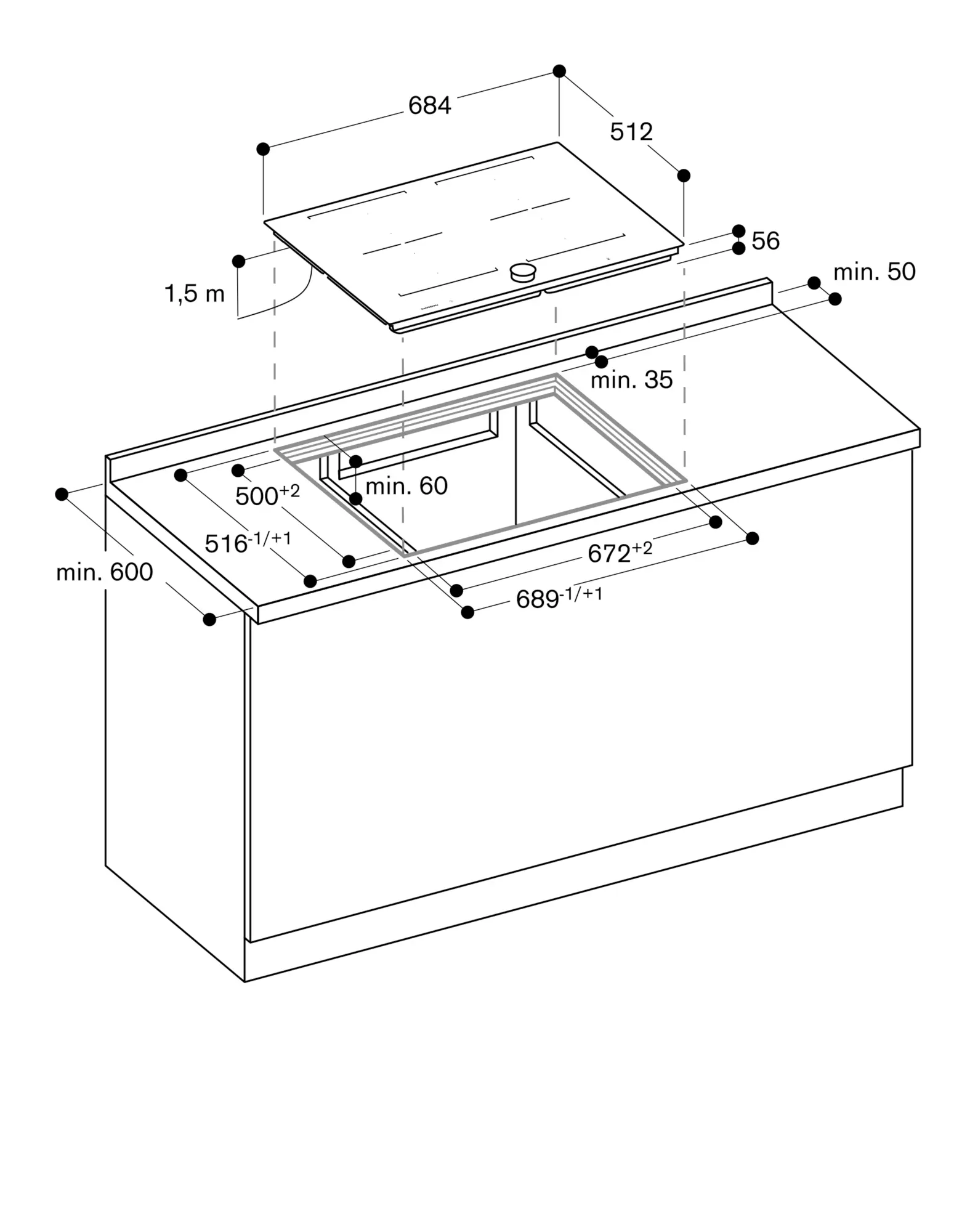 Cihaz tezgaha alttan sabitlenmelidir.