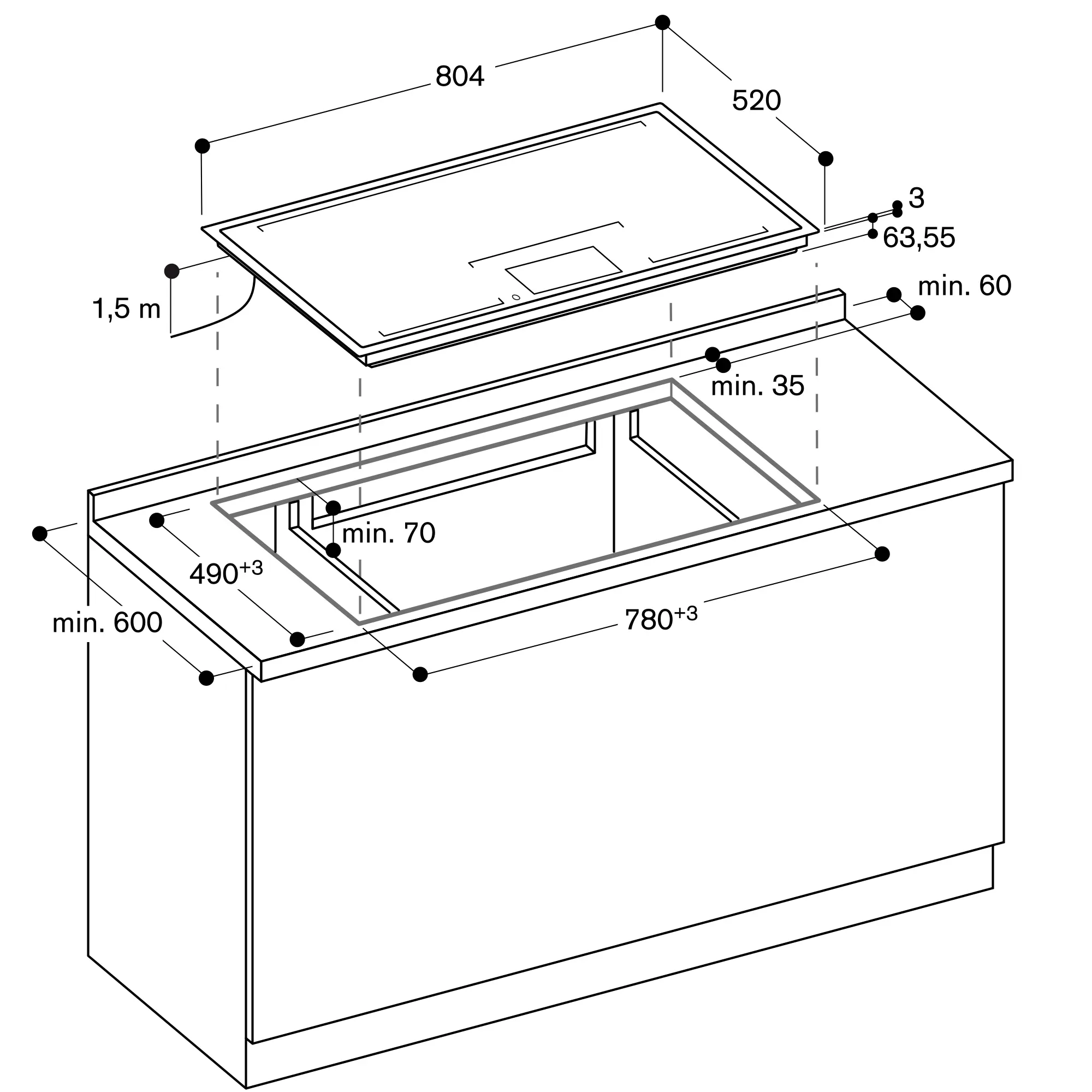 Bağlantı kablosu 1.5 m, fiş hariç.