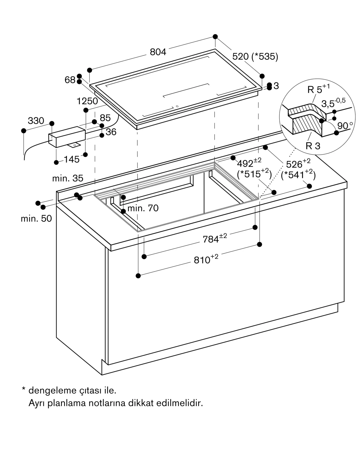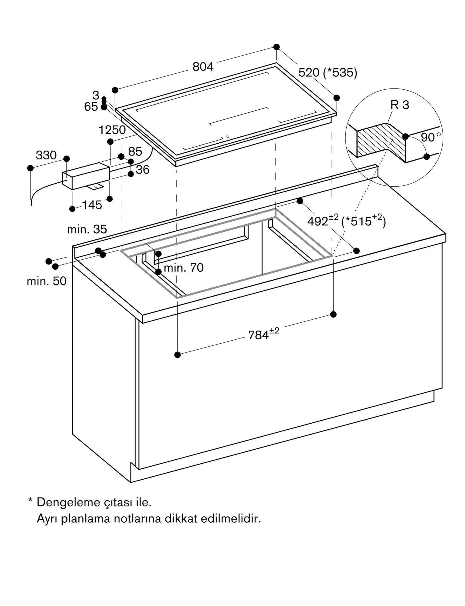 Montaj ( tezgah üstü yada hem yüzey ) durumuna göre tezgah kesitine dikkat ediniz.