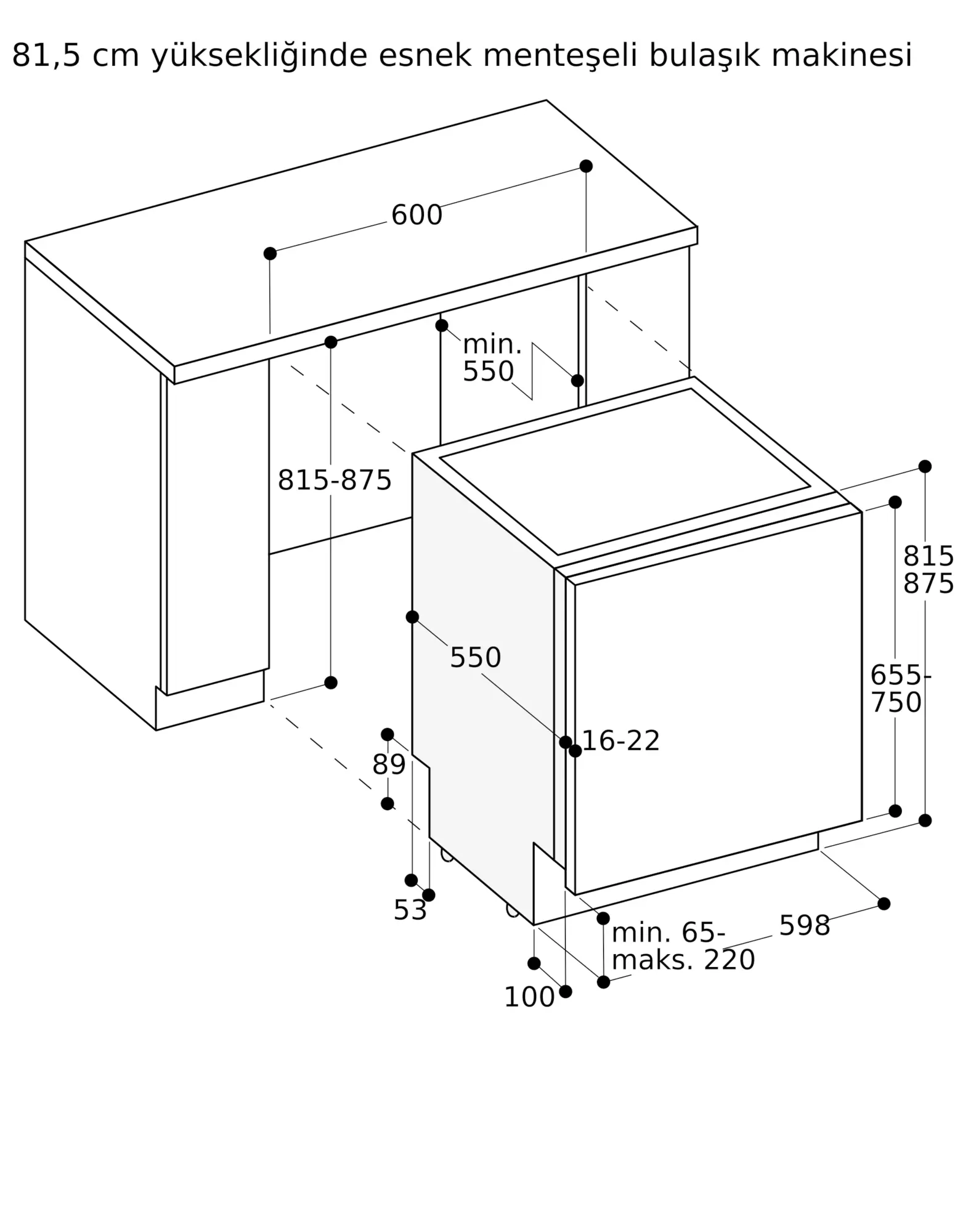 Cihaz baza yüksekliği 100 mm (çizimleri inceleyiniz).
