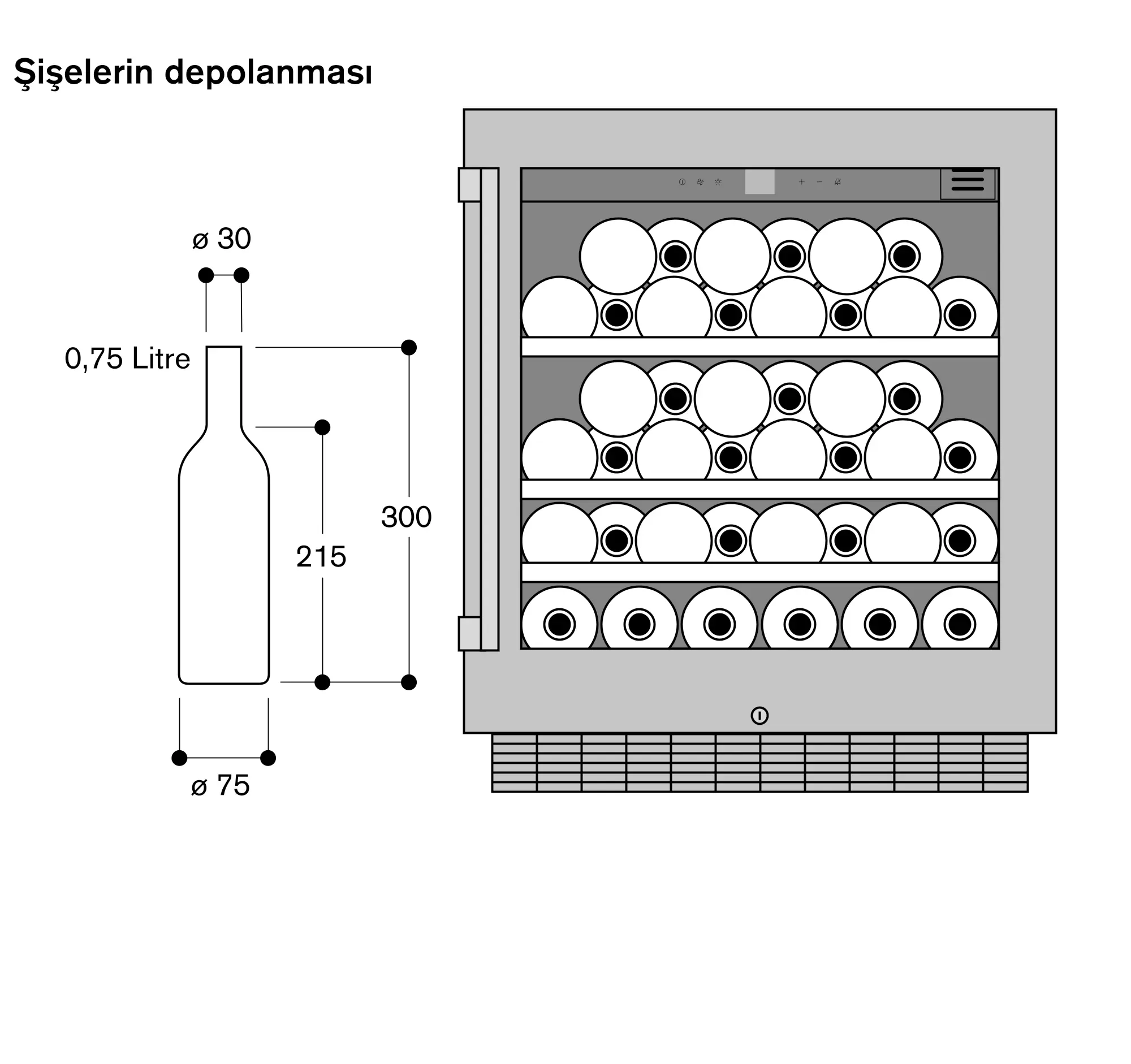 Kapasite 42 şişe (0,75/l standart şişelere göre).