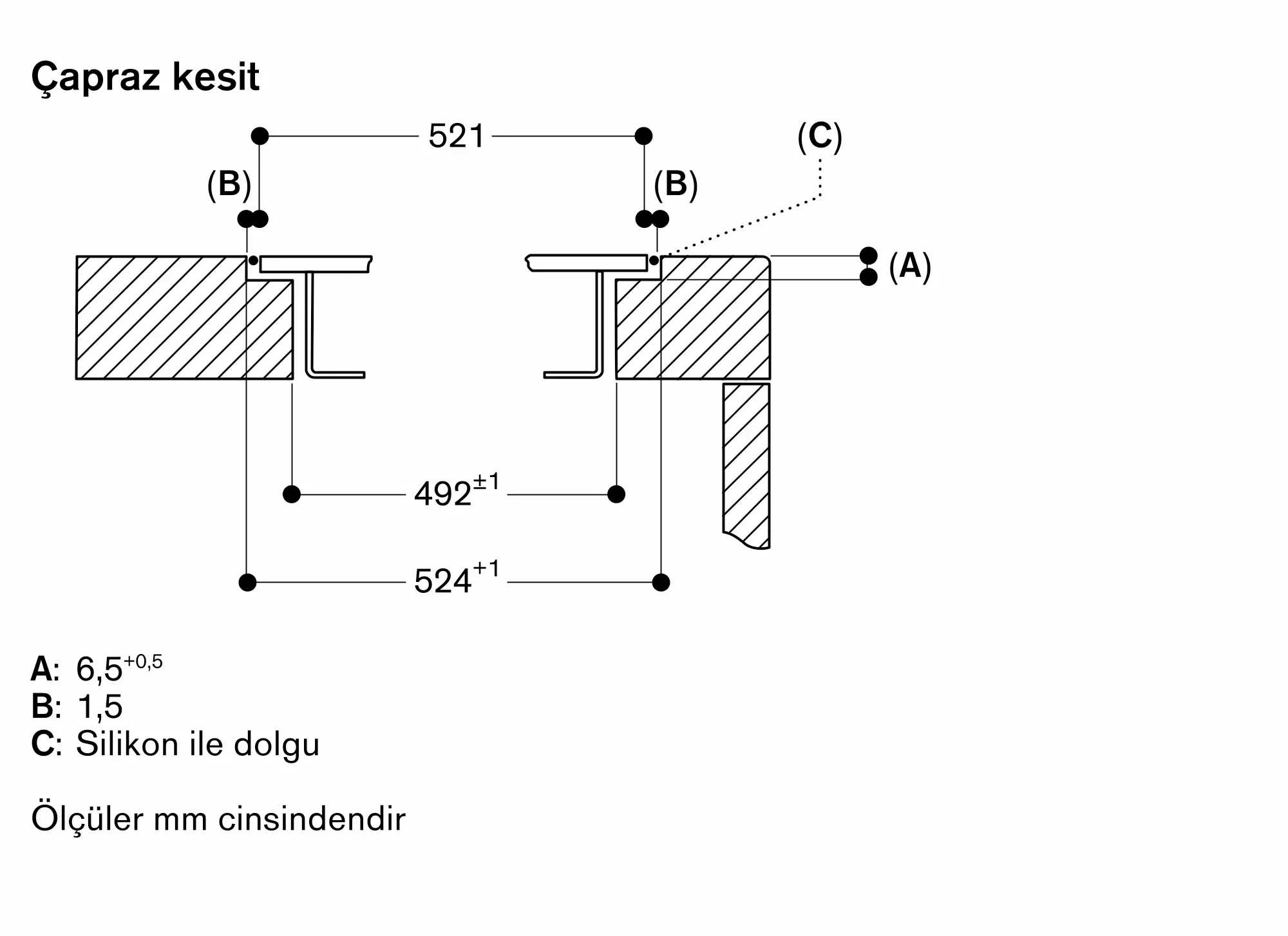 Silikonun doğru şekilde uygulanabilmesi için, tezgah kesit kademesinin mutlak şekilde düz ve pürüzsüz olması gerekmektedir.