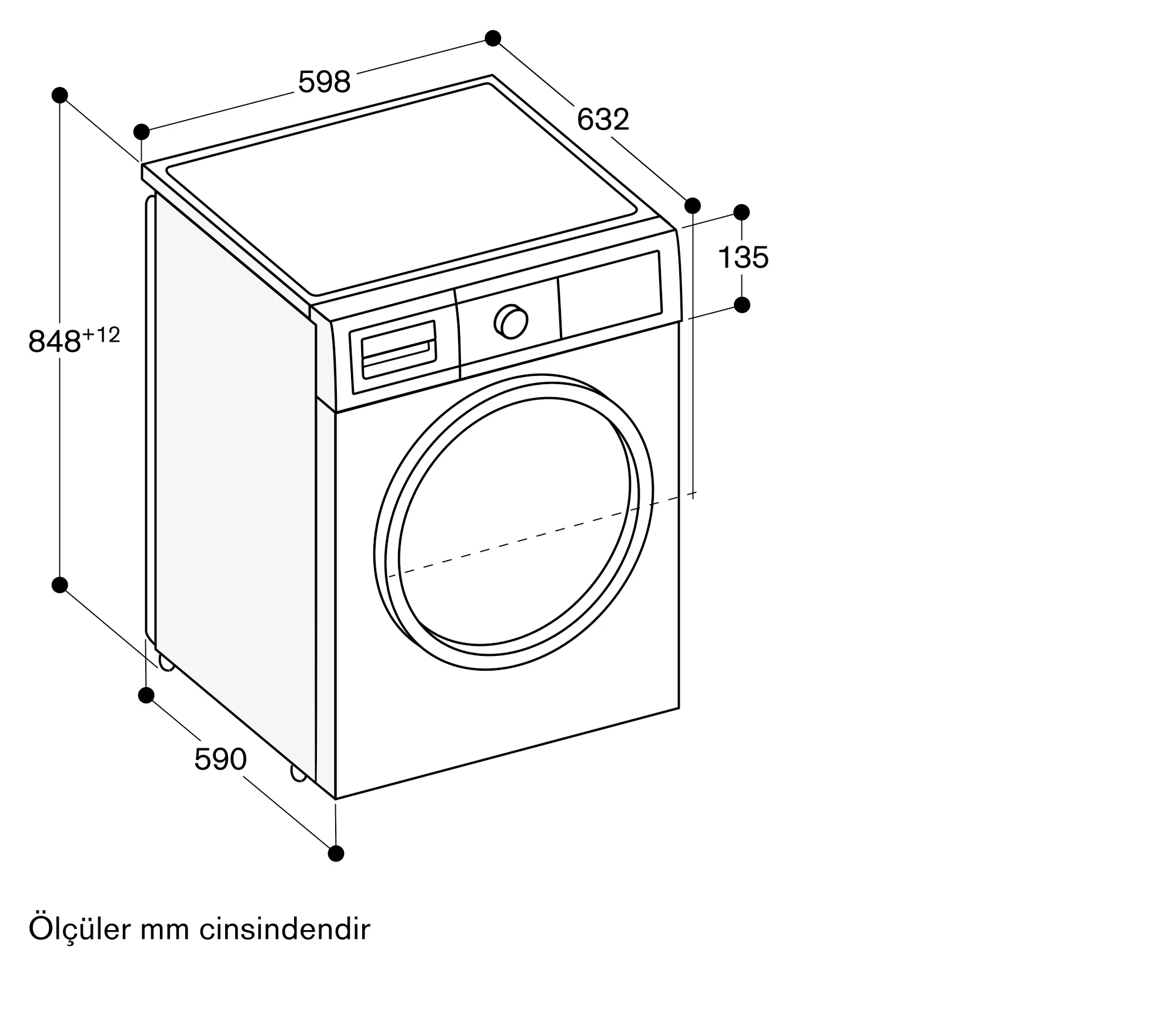 Tezgah altı kurulum için yükseklik: 85 cm.