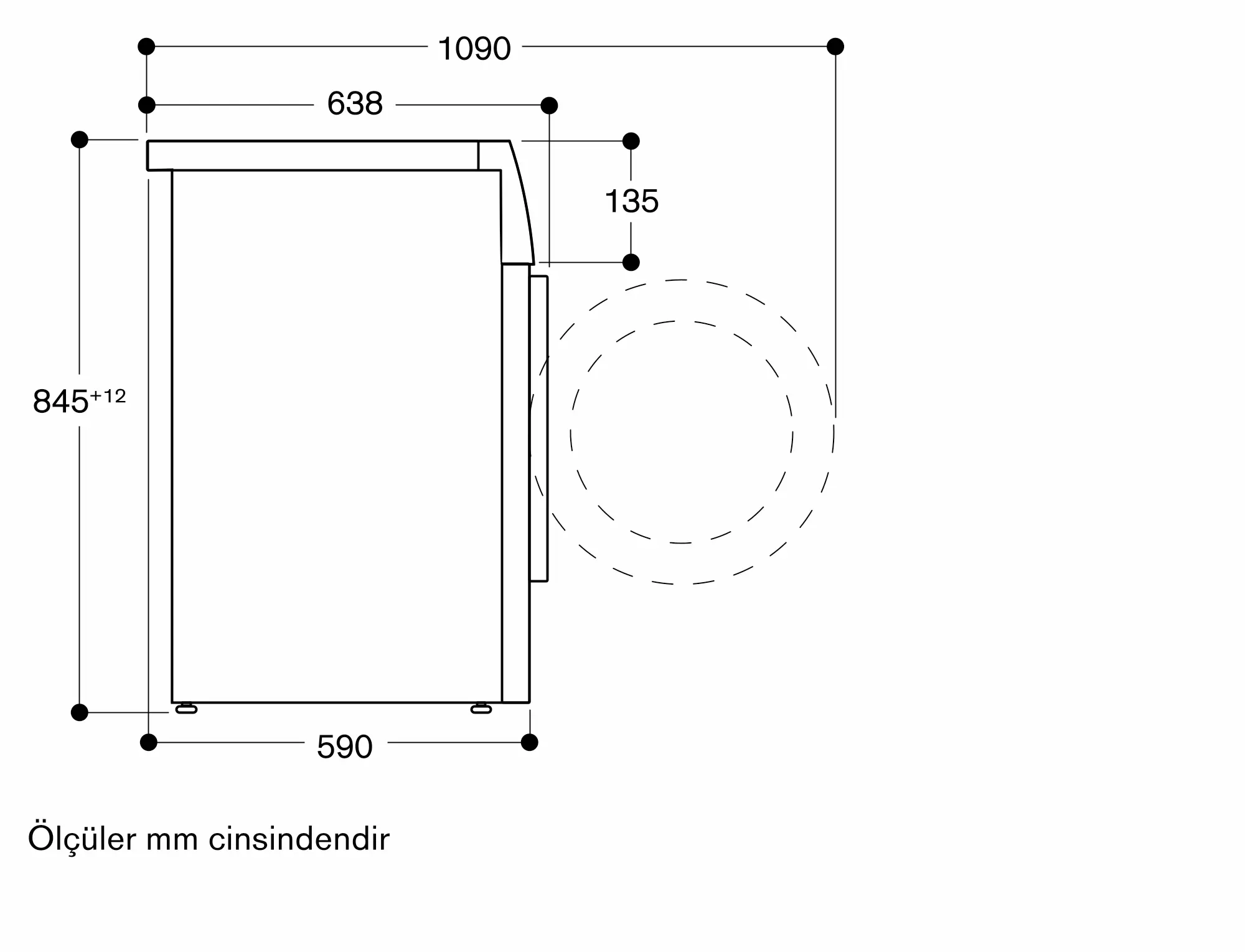 Tezgah altı kurulum için yükseklik: 85 cm.