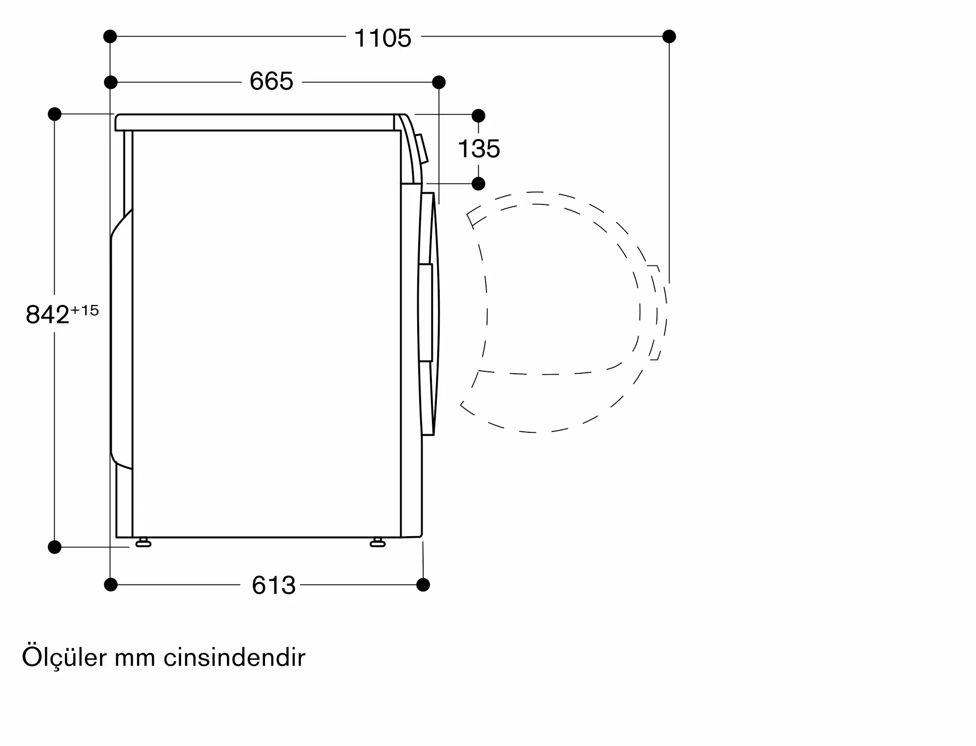 Tezgah altı kurulum için yükseklik: 84.2 cm.