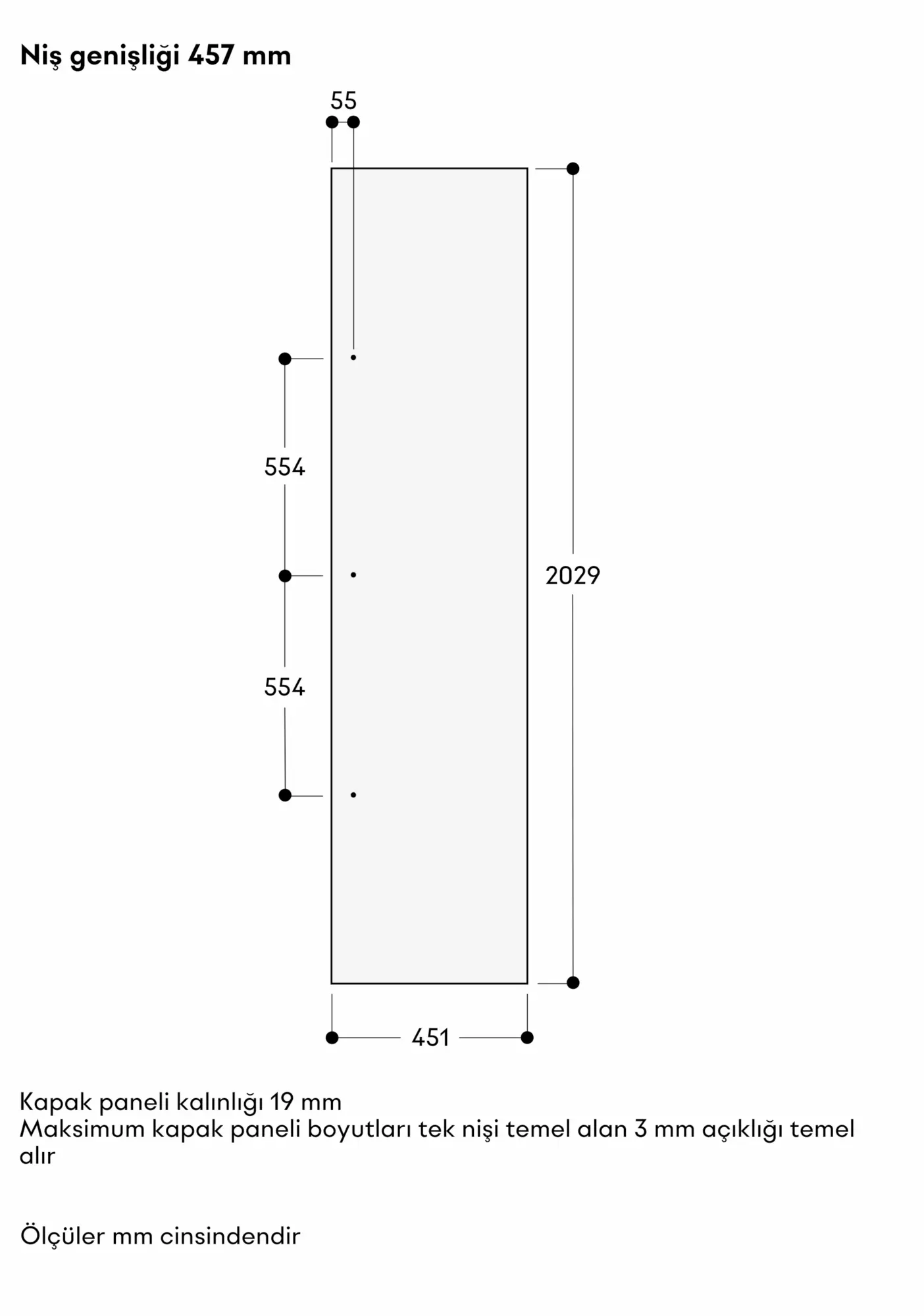 Kapı açılma açısı 115°, 90° olarak montaj yapılabilir.