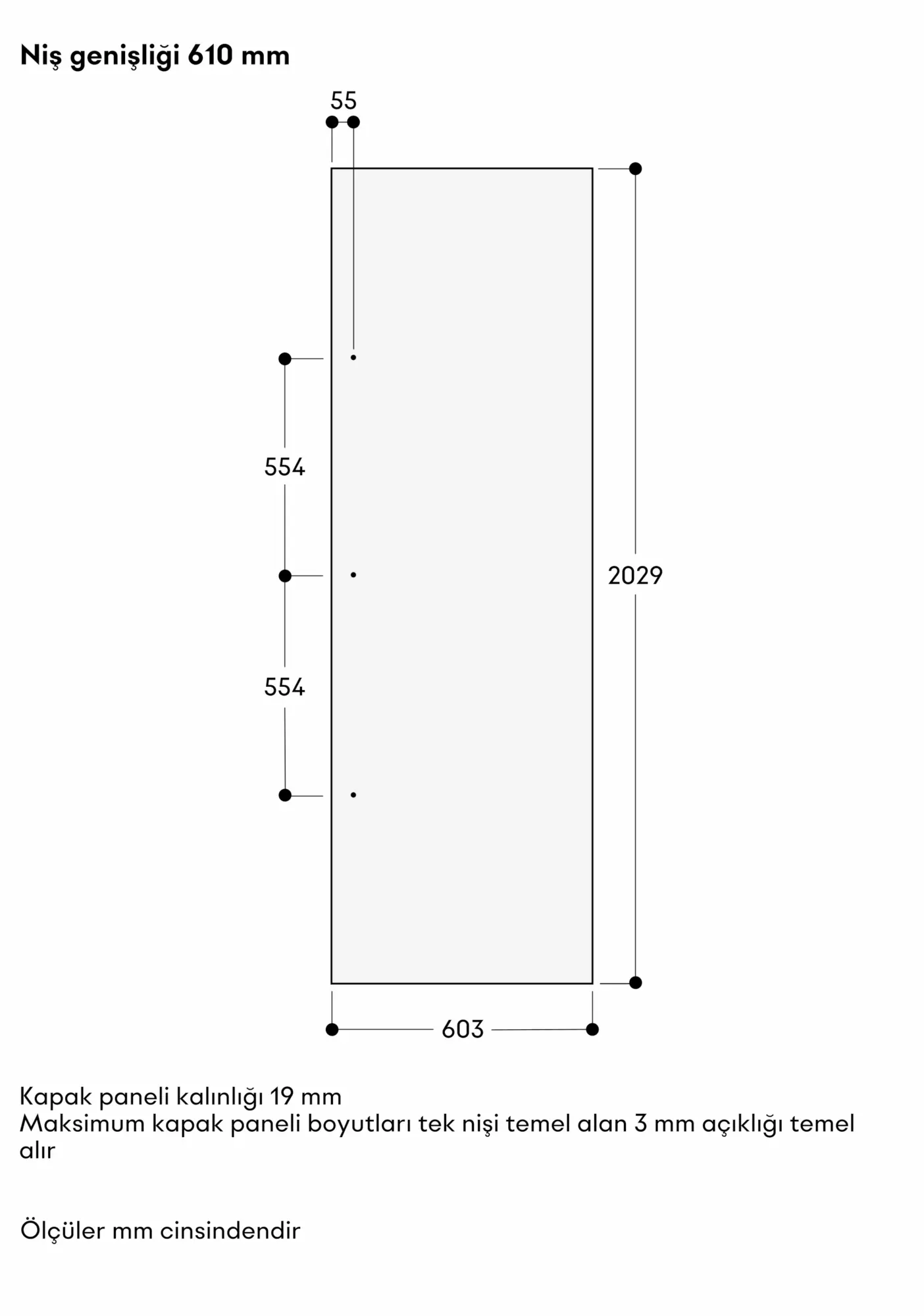 Kapı açılma açısı 115°, 90° olarak montaj yapılabilir.