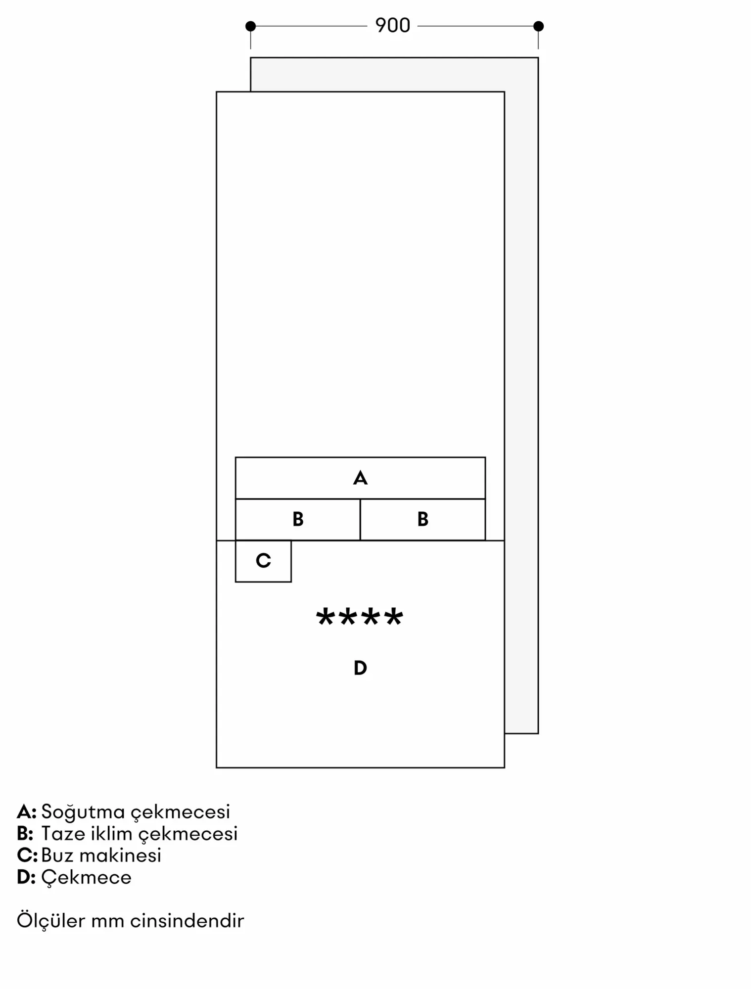 Sabit su girişi ile derin dondurucu bölmesine entegre buz makinesi.