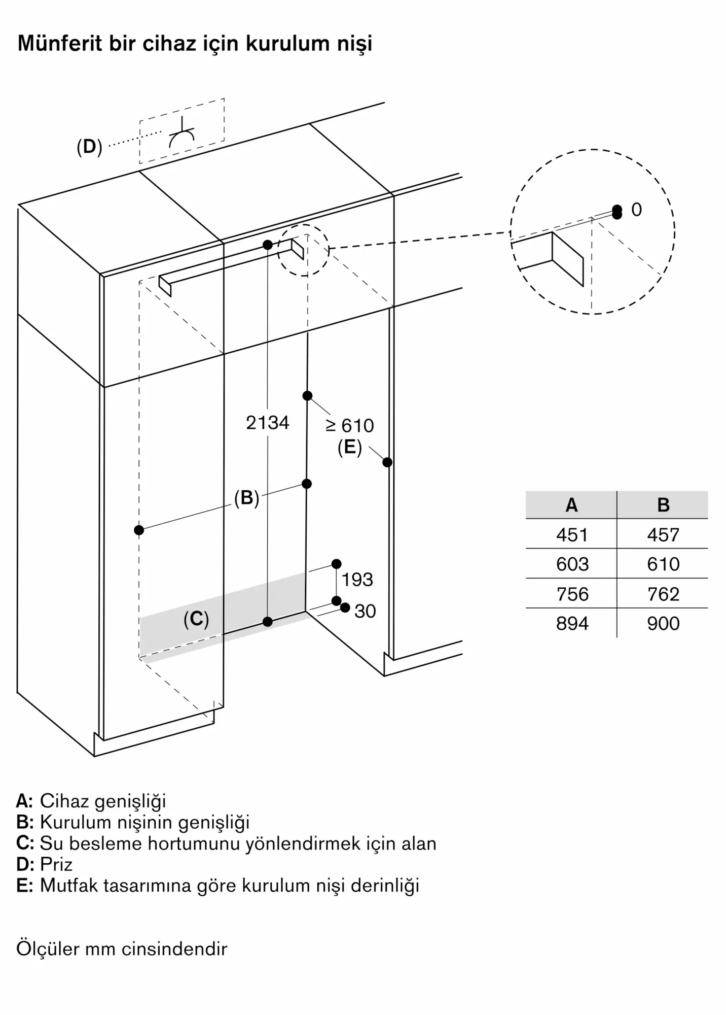 Su bağlantısı için kapatma vanası cihazın yanında planlanmalı ve daima erişebilir olmalıdır.