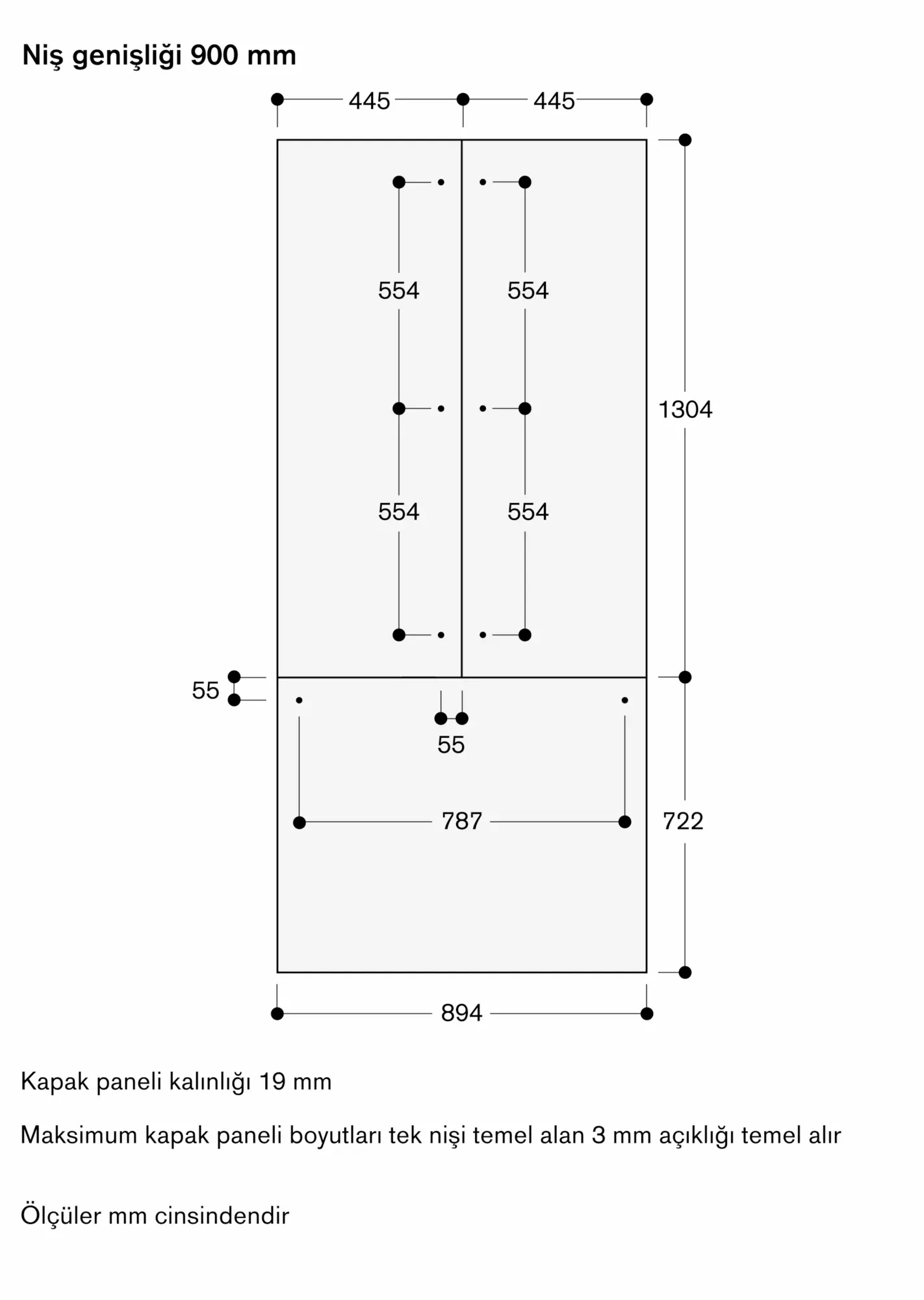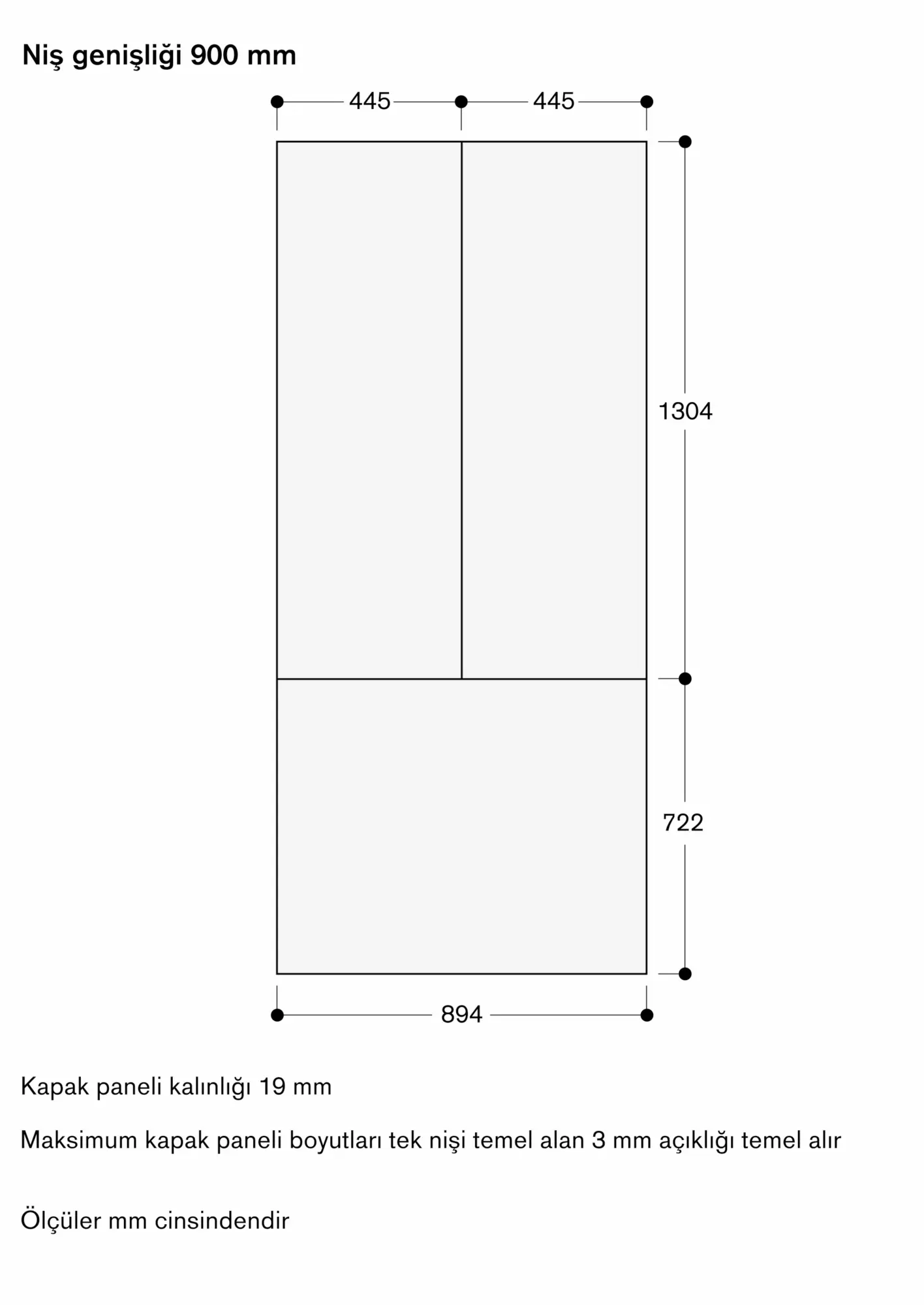 Kapı açılma açısı 115°, 90° olarak montaj yapılabilir.