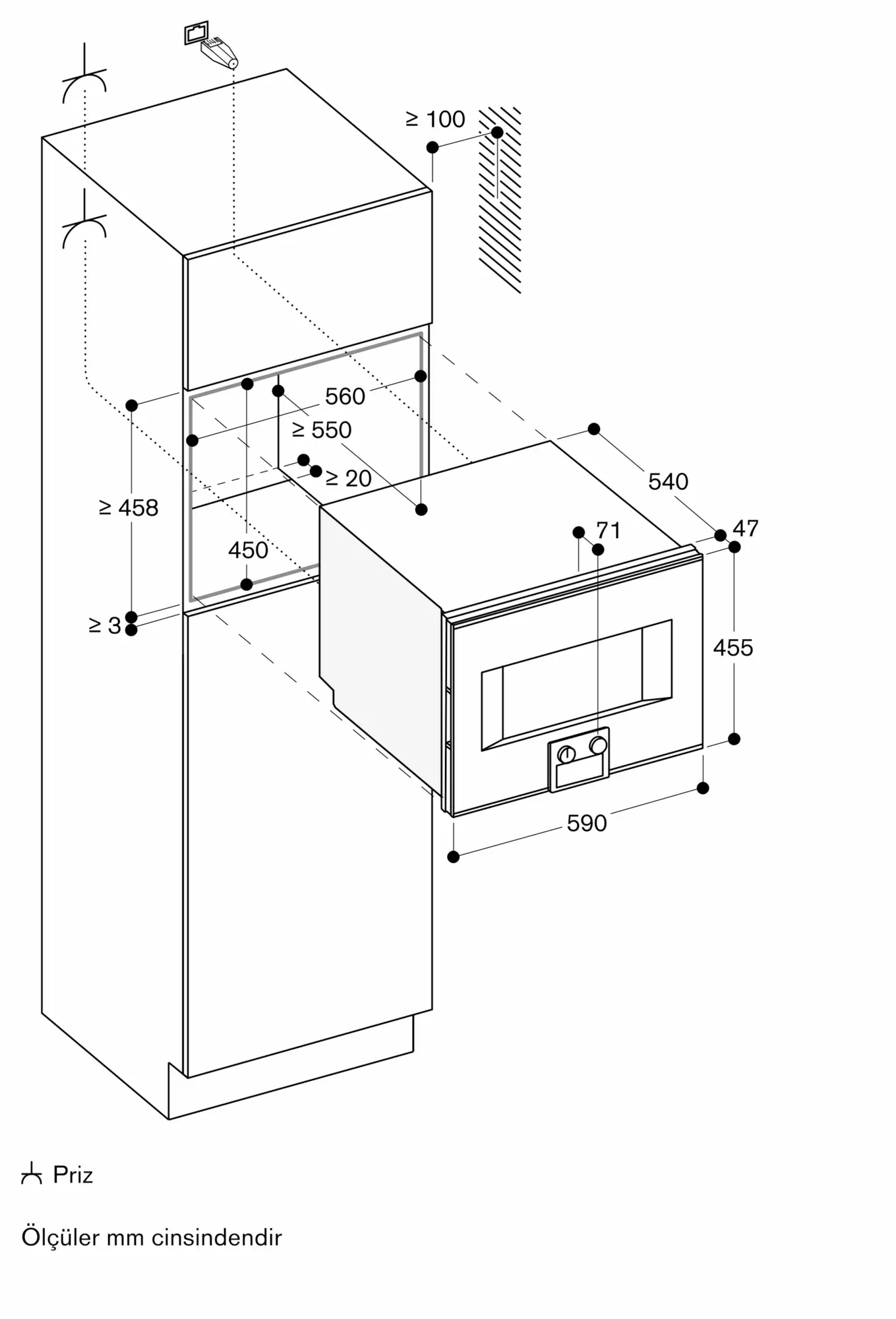 Ana prizler, cihazın montaj boşluğuna denk gelmemelidir.
