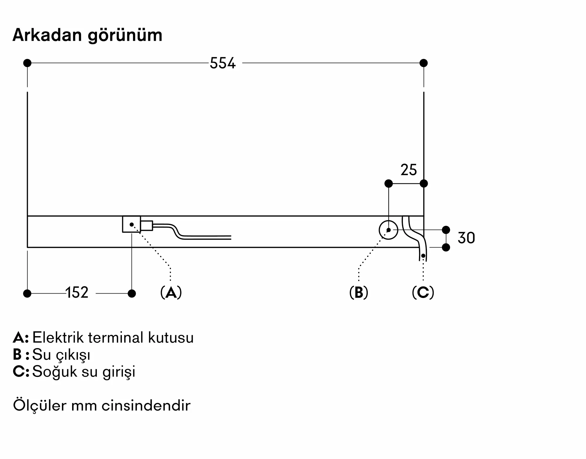 Sadece soğuk su bağlantısı yapılmalıdır.