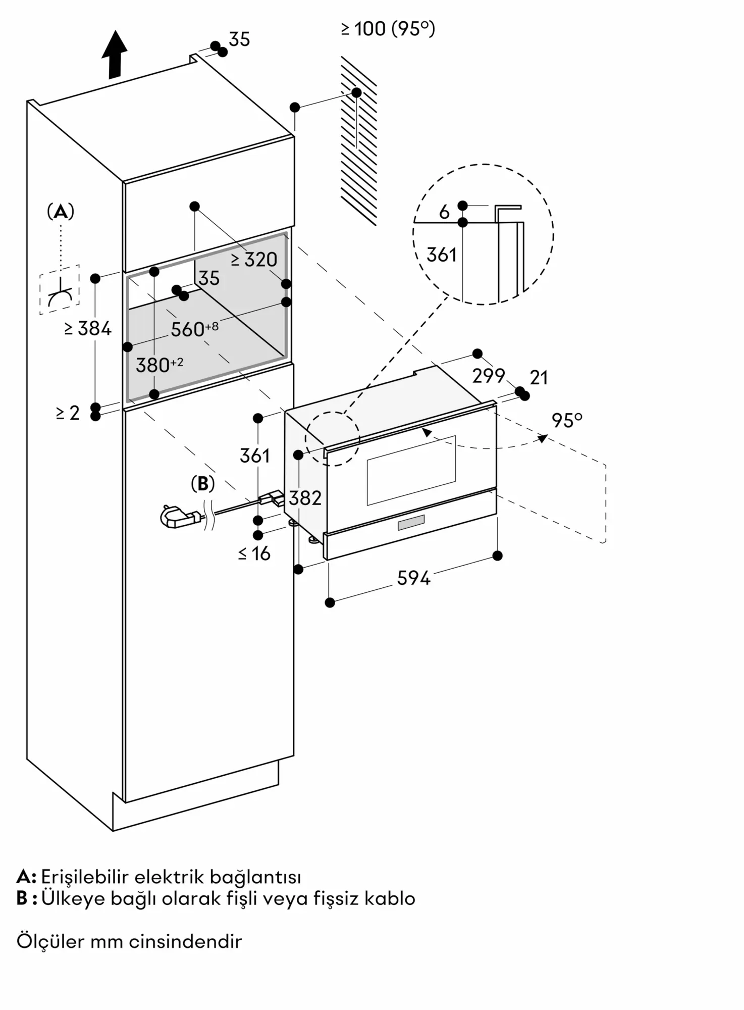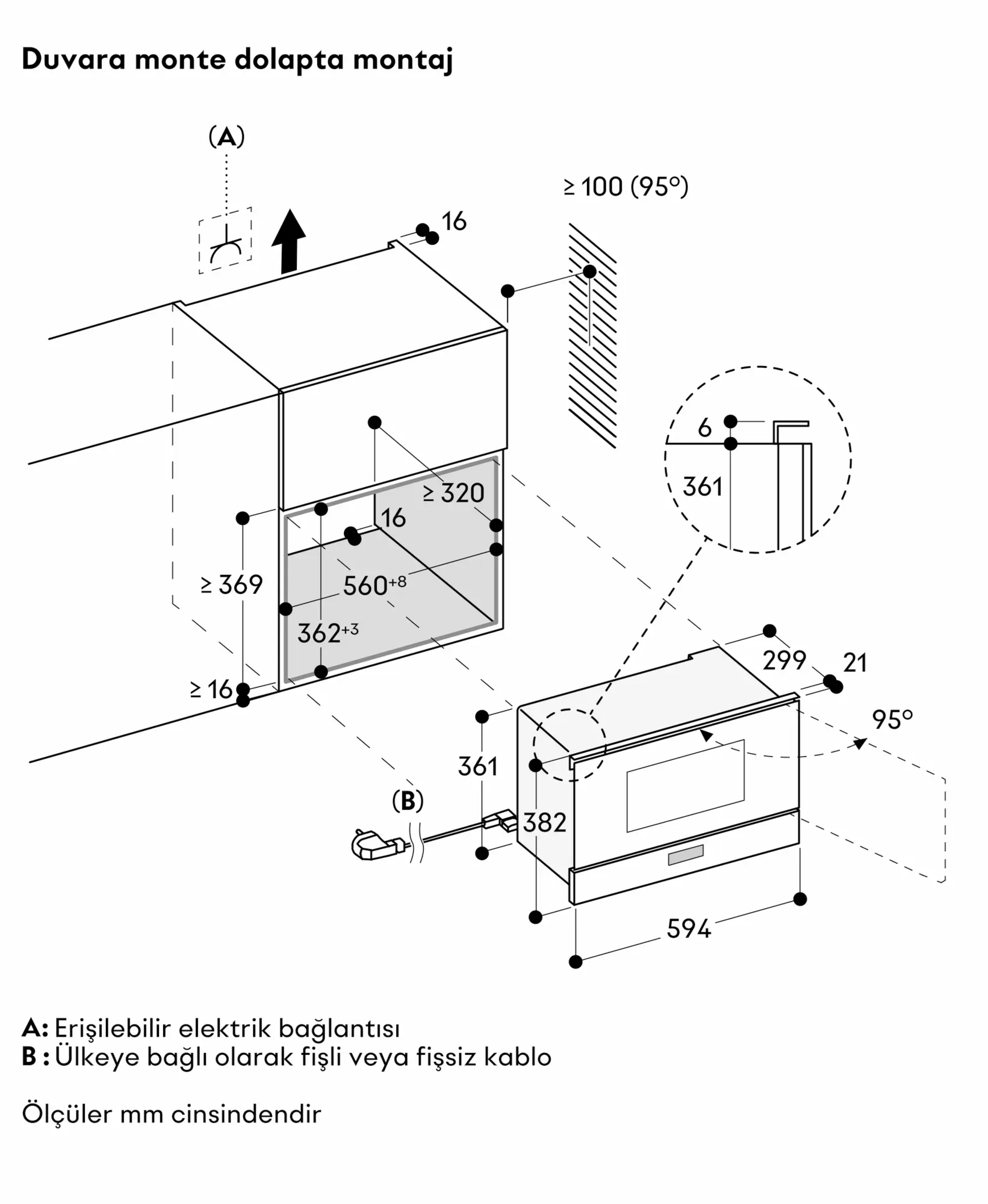 Bir köşe kurulumu planlarken, yana açılan kapıya ve duvara gereken minimum mesafeye dikkat edin.