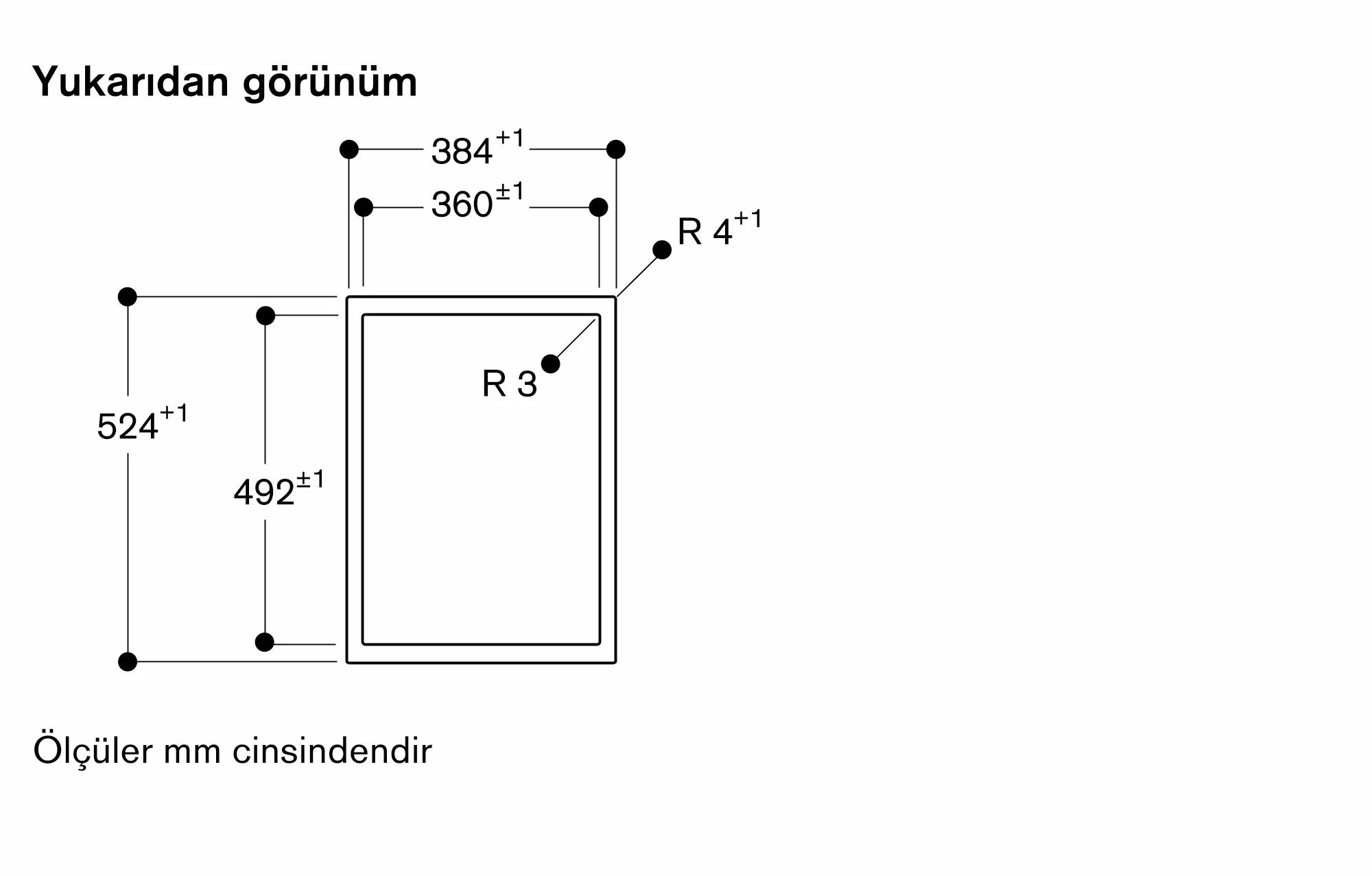 Cihaz çalışma tezgahına üstten monte edilebilir.