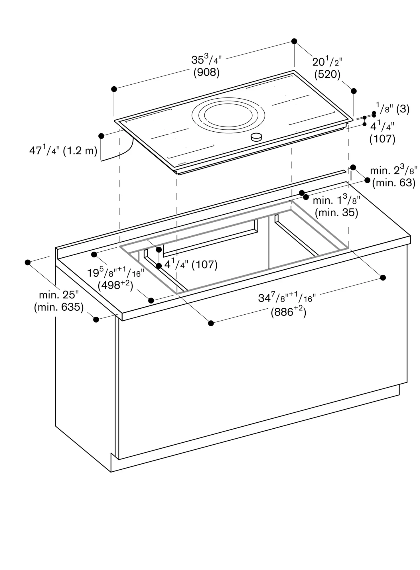 Cooktop clamping range: 1 3/16"- 1 9/16".