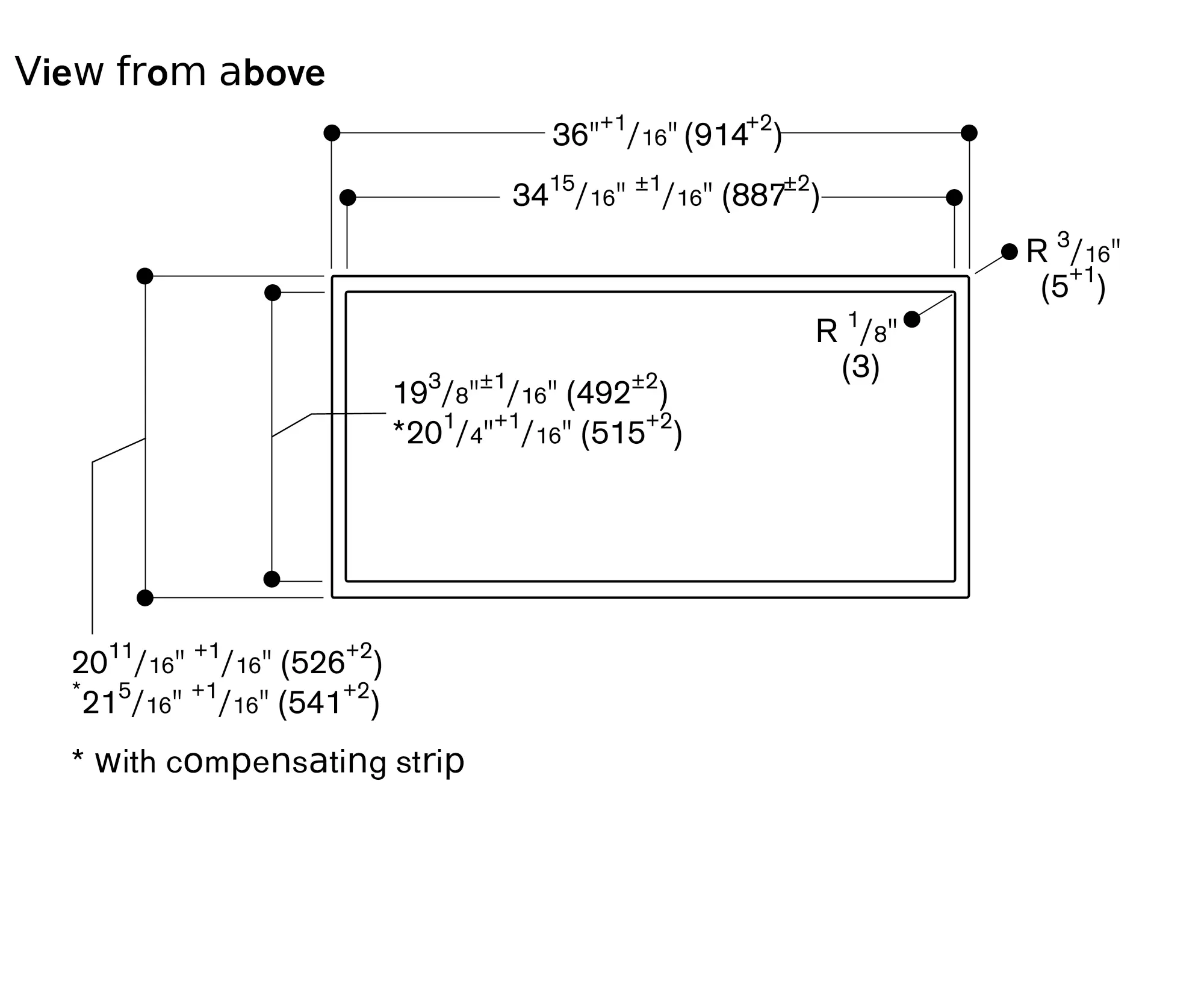 The bearing capacity and stability, in the case of thin countertops in particular, must be supported using suitable substructures. Take into account the appliance weight and additional loads.