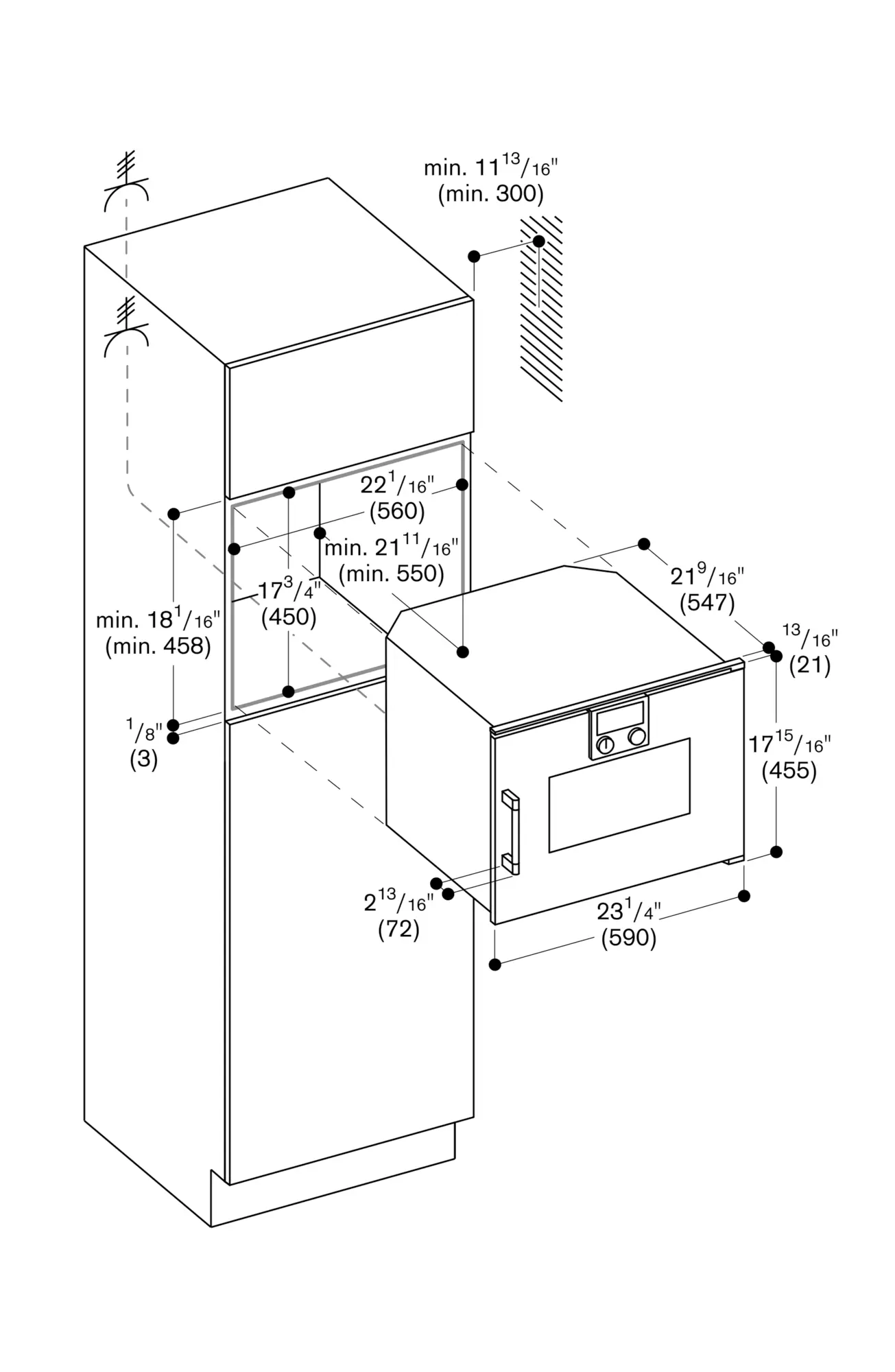 No other electrical appliances should be installed above the BSP Combi-steam oven.