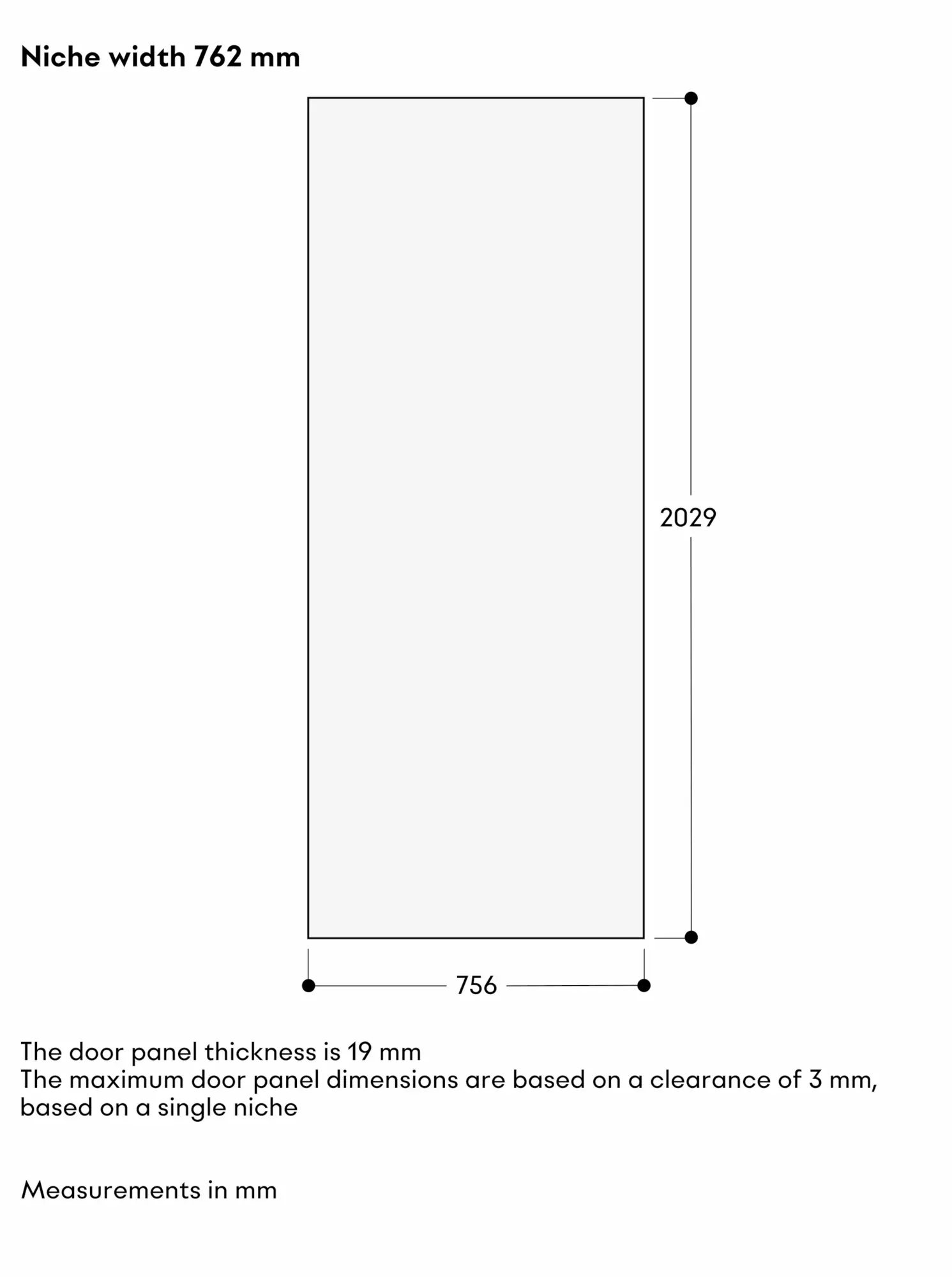 For RVC and RVF, niche width 30" (76.2 cm).