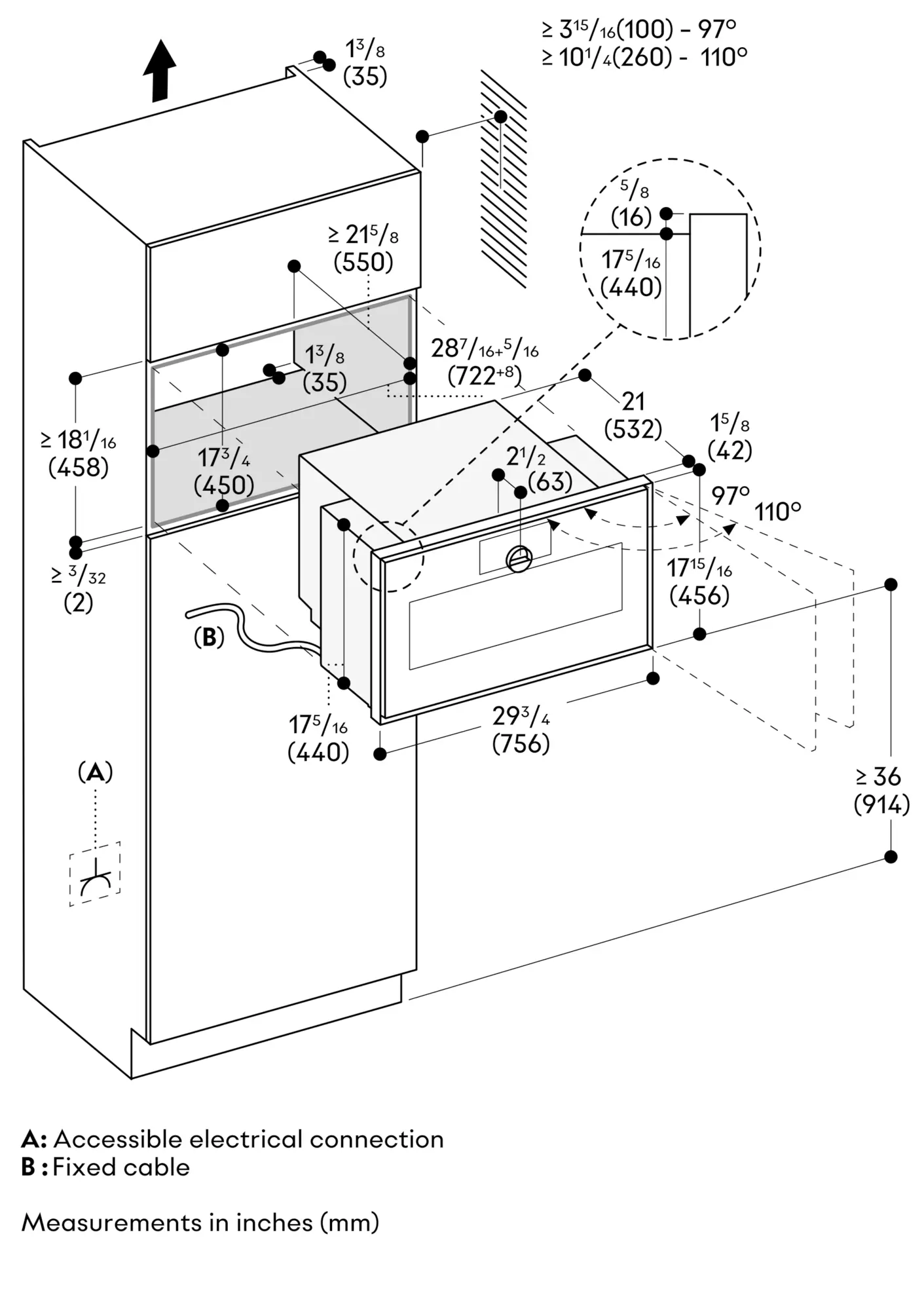 To comply with UL norm the appliance must be installed at a minimum height of ≥ 36" (914 mm).