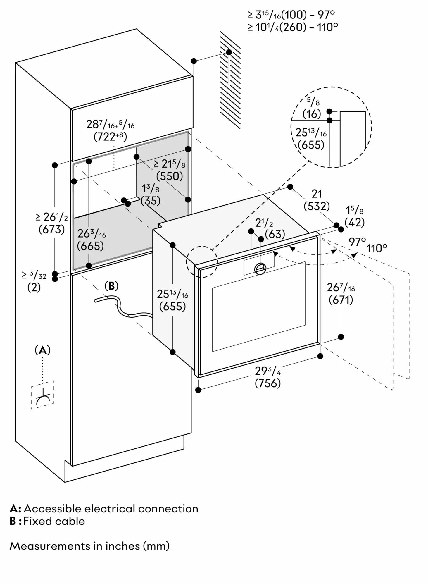 The electrical connection must be accessible and located outside the oven cutout.